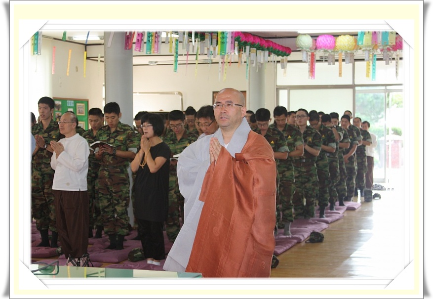 - [서울] 대한불교조계종 삼각산화계사(주지 수암스님)는 불기2555(2011)년 9월 4일(일) 자매결연법당인 경기도 남양주 26사단 76여단 호국사자사에서 230여 대중이 모인 가운데 수계법회를 봉행하였다. 이 자리에는 여단장 내외와 호국사자사 신도 등이 함께 수계를 받았으며, 오늘의 이 수계법회가 사자부대 부대장님을 비롯하여 여러 지휘관들과 부대원 모두가 드높은 사기를 진작하고, 맡은 바 임무에 충실하여 보람되고 건강한 군 생활이 될 수 있기를 한 마음으로 기원하였다. 수계법회에 참석한 사자부대 장병들은 교수사 교무국장 동재스님의 인례로 모두 장궤합장하고 화계사 주지 수암스님을 전계사로 모신 가운데 세 가지 근본인 삼귀의와 오계를 수계 받으며 부처님 제자로 다시 태어나는 날로, 계율을 지킬 것을 약속하였다. 반야심경 봉송이 끝나고 수계대중들은 모두 장궤합장을 하고 경건한 마음으로 한 문장씩 따라 봉독하였다. 복덕이 구족한 도덕적 인간으로 다시 태어나기위한 대중스님의 연비의식은 장병들을 엄숙한 자기성찰의 기회로 삼을 수 있도록 자비로운 마음으로 감동을 전하였다. 전계대화상 주지 수암스님은 장병들에게 ‘삼귀의와 오계’를 지킬 것을 서원하며 “‘계’ 라는 것은 특별한 것이 아니다. 인간으로서 선하게 살고자 하는 행위이며, 도덕적 삶을 살아가겠다는 자기 의지 표현이다. 수계는 좋은 습관과 선한 행위가 나의 것이 될 수 있도록 계기를 만드는 것이며, 착한 일은 받들어 행하고 나쁜 일은 하지 않겠다고 다짐하는 것이다. 또한 집착과 괴로움에서 벗어나 행복으로 나아가는데 있어 자신의 운명을 바꾸는 계기가 될 것이다. 중생의 고통에서 벗어나 부처의 삶을 살아가겠다는 약속이다. 비록 군대에서의 작은 인연이지만 오늘 이 수계법회는 운명을 바꿔놓는 씨앗이다. 스스로 원하는 삶을 살아갈 수 있도록 계기를 마련하였으니 ‘삼귀의와 오계’를 가슴에 새겨 바른길로 나아가길 바란다.”고 하였다 전계화상 주지 수암스님은 수계법문에서 “사회에서 하는 말 가운데 ‘성공’이란 말과 ‘행복’이란 말이 있는데 여러분은 어느 쪽을 원하십니까? 아마 우리 어머니세대들은 성공보다는 행복하기를 더 바랄 것입니다. 여러분들은 행복보다는 성공을 더 추구하는 세대일 것입니다. 요즘처럼 멀티시대를 살아가야 하는 사람들은 자칫 자신을 잃어버릴 수 있습니다. 하나만 잘 해야 되는 것이 아니라 이것저것 다 잘해야 하는 멀티플레이어가 되어야한다고 생각 하기 때문 입니다. 존재감에 대한 강한 집착이 어느 날 자신에 대한 상실감으로 다가와 바보가 된 듯하고 혹은 방황을 하기도 합니다. 성공한 사람이 행복할까요? 불자라면 성공하기에 앞서 행복해야 된다고 생각합니다. 행복하려면 멀티플레이어가 되지 말아야 합니다. 지금부터라도 멀티화되어가는 나를 제어하세요. 단순함이 행복을 가져다줄 수도 있고, 참다운 자신을 발견하는 것일 수 있음을 기억하시기 바랍니다.”라고 하였다. ★연비의식 수계자들은 장궤 합장한 자세에서 남자는 왼팔, 여자는 오른팔을 걷어 팔을 앞으로 내밀어 연비를 받았다 ▲ 이날, 생일을맞은 장병들에게 선물을 나누어주고 ▲ 장병들에게 선물 전달식.... 동재스님의 환한웃음은 옵션 ▲ 여단장 감사패 증정, 감사의 인사말... ▲식이 진행되는 동안 주방에선 자장면과 과일이 준비되고(여러분이 진정한 부처님입니다.) ▲엄마가 해 주시던 그맛(장병들은 맛있는 자장면에 마냥 행복하고..) 호국사자사 수계법회는 화계사가 주관하고 화계사 포교사회(회장 이광우)가 2년에 한 번 주최한다. 이번 수계식에는 백상원의 학인스님 두 분이 동참하셨으며, 화계사 신도회장(한대법성)을 비롯하여 합장단(지휘 장관석), 포교사 등이 참석하여 자리를 더욱 여법하게 하였다. 취재 / 기획팀 홍보위원 김지희 정법화 취재협찬 / 기획팀 홍보위원 왕영만 용담