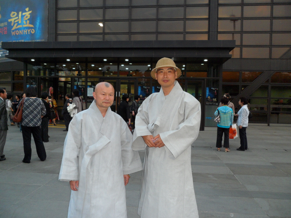 - [서울] 불기 2555년 6월 1일 수요일 밤 8시 서울올림픽공원 우리금융아트홀에서 MBC창사 50주년 특별 뮤지컬 원효(WON HYO)가 공연되고 있었다. 신라시대 최고의 훈남 원효대사와 최고의 미녀 요석공주의 운명적 러브스토리 (최종미 제작, 김승환 연출, 박선자, 최진원 극본)가 한참 공연 중인 현장. 1400여 년의 시공간을 뛰어 넘어 부활하는 사랑의 메세지를 전달하는 이날 공연을 관람하기 위해 대한불교조계종 봉은사(삼성동) 주지 진화 스님, 포교사단 봉은사 포교사회 포교사들과 1000여 명의 사부대중이 서울올림픽경기장 우리금융아트홀로 자리를 옮겼다. 밤 10시 15분 객석을 꽉 메운 봉은사 신도들은 이날 감동의 물결 속에 막이 내린 무대를 떠나지 못했다. 밤 10시 20분 주지 스님을 비롯한 몇몇 신도들은 원효의 제작자 최종미 프로듀서와 한참의 대화 후 뮤지컬 감동이 채 가시지 않은 아트홀을 뒤로 하고 집으로 향했다 20만 신도들을 자랑하는 봉은사. 최종미 프로듀서는 뮤지컬 공연 소리외엔 아무 소음도 들리지 않고 끝까지 질서 정연한 모습을 보인 봉은사 신도님들에 대해 감사의 말씀을 전해달라고 하였습니다. 역시 달랐습니다. 봉은사 화이팅! 입니다. 취재 기획팀장 한애경 법용화