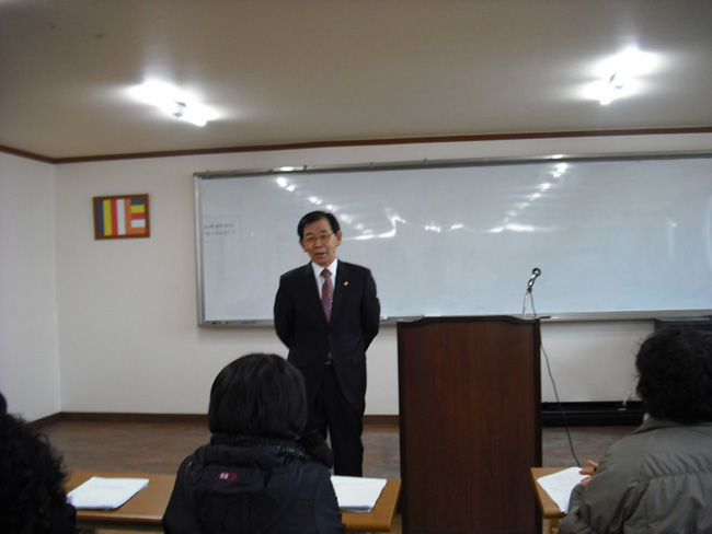 - [광주전남] 광주전남 지역단에서는 2월 15(화) 오후 1시부터 2시간동안 광주 무각사 불교대학에서 금년 포교사고시 지원자를 대상으로 단장이 특강을 실시하였다. 이번 교육은 그동안 포교사 고시에 응시하려는 사람들이 시험에 부담을 느끼고, 시험 방향에 대해 제대로 정립되지 못한 점을 감안하여, 단장이 직접 강의를 시작하게 된 것이다. 강의는 불교 기본 교리에서 시작하여 사찰문화, 종헌 종법, 고승들에 대한 소개까지 불교 전반에 걸쳐 강의를 하였으며, 단장이 평소 목포 불교대학에서 강의 시에 정리한 교재를 활용하였다. 이번 강의에는 30여명의 응시자가 참석하였으며, 강의 내용을 듣고 난 후, 시험에 대한 유익한 정보가 되었다며 감사를 표시하고, 조금은 시험에 대한 부담을 덜었다고 하였다 강의 내내 사찰문화해설팀 팀장 정성행 강막례 포교사와 간사가 교육 준비를 도와, 원활히 특강이 마무리 되도록 하였다. 단장은 강의에서 포교사의 위치와 자부심을 알리고, 이후 포교사가 되었을 경우 활동 방향에 대해서도 간단히 소개하였다. 이번 포교사고시에 광주전남지역에서는 56명이 응시하기로 하였으며, 광주 무각사 30명, 광주불교대학(향림사) 13명, 광주불교문화대학 7명, 추천이 6명이다.