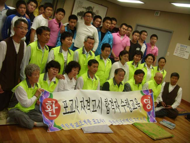 - [서울] 서울경기 제15회 포교사자격고시 2차 연수과정인 두 번째 분야연수가 불기2554년 5월 30일 4개 분야에 나뉘어 실시되었다.교육 4.5.6팀은 각 팀의 팀장과 위원장의 지도아래 역삼동에 있는 보리사를 찾아 계층분야 연수를 가졌다.보리사는 포교사단에서 어린이포교를 주관하는 사찰로, 어린이팀에서는 여래사, 보륜사, 정혜사의 포교를 36명의 포교사가 맡고 있다.오늘은 어린이팀의 한미혜 포교사가 법회 30분 전에 포교사고시 1차합격자들을 맞아 교육하였는데, 어린이법회의 실재와 활동사항 등을 슬라이드를 통해 상세하게 설명해 주었다. 어린이법회는 1부와 2부로 진행되었다.1부에서는 예불과 법문이 있었고, 2부에서는 ‘한글반야심경 퍼즐게임’이 있었는데 이긴 팀에게는 문화상품권의 상품이 주어졌다. 보리사의 어린이 법회는 처음부터 끝까지 포교사가 진행하는데, 인상 깊은 것은 고사리의 어린이 손에 의해 목탁이 쥐어져 법회가 진행되고 있었다.한미혜(어린이팀) 포교사의 교육을 받고, 어린이들과 법회를 함께한 교육생들은 보리사에서 준비한 맛있는 점심공양을 하고 팀별 미팅을 가진 후 헤어졌다.