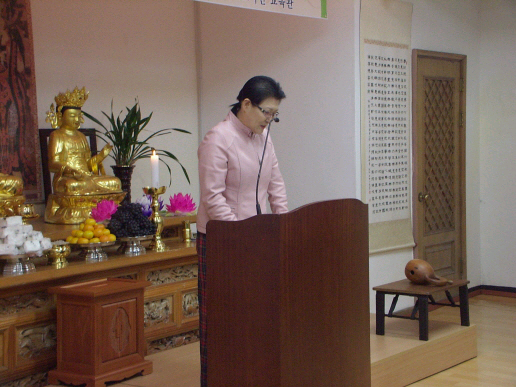 - [중앙] 10월 18일(일) 포교사단(단장 강홍원)은 안암동 교육관에서 계층.통일 분야 연수가 있었다.전국의 어린이팀, 청소년팀 , 대학 청년팀, 통일팀등 팀장을 비롯 포교사 100 여명이 참여한 이날 분야별 연수는 입재식에 이어 각 분야별 특강, 활동사례발표 및 토론 후 회향하였다. 단장 인사말을 대독한 조연홍 부단장은 “어느 하나 중요하지 않은 분야가 없으나 특히 계층과 통일 분야는 우리 한국불교의 미래가 달려있으므로 포교사들의 역할이 매우 중요하다고” 말하였다. 한편 포교사들의 위상에 대하여 “집행부에서는 포교사들이 재가 지도자로서의 자리 메김에 최선을 다 할 것이며 포교사증으로 종단 내 신분을 확실히 보장받도록 하겠다”고 하였다. 한편 계층분과 특강에는 강남 진선여고 교사이며 불교 레크레이션 협회 교육원장인 장 현재님이 어린이 [청소년 법회의 활성화 방안]에 대한 강의를 하였고, 통일 분과 특강[통일분과 활성화방안]에는 백남석 포교사가 해주었다.활동사례발표에는 어린이팀의 김석두 포교사가, 통일팀에는 황성란 통일2팀 팀장이 각각 생생한 포교현장의 활동을 얘기로 담아냈다.
