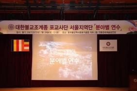 - [포교사단] 불기 2567(2023년) 대한불교조계종 포교사단 분야별 연수가 대면 연수로 실시가 됐다. 코로나19로 인한 방역지침에 따라 비대면 온라인 강의를 실시해온 포교사단은 2023년 방역지침완화로 인한 정부정책변화에 따라 4년 만에 대면연수로 전환하여 각 지역단 별로 연수 계획을 수립하여 진행 하도록 했다. 날 짜 지역단 장 소 비 고 4/29 부산지역단 초읍 어린이 대공원 6/3 광주전남지역단 송광사 사자루 6/10 강원지역단 월정사 성보박물관 강당 6/17 전북지역단 금산사 6/17 경남지역단 성주사 설법전 6/17 인천경기지역단 안양 지장선원4층 대적광전 6/25 대구지역단 팔공총림 동화사 6/25 울산지역단 통도사 해장보각 7/2 대전세종충남지역단 마곡사 템플스테이 별관 7/9 충북지역단 법주사 능인교육관 7/15 경북지역단 의성 최치원문학관 7/16 제주지역단 보현사 7/29 서울지역단 한국불교역사문화기념관 지하공연장 일정에 맞춰 각 지역단별로 연수가 실시되었으며 7월 29일 서울지역단을 끝으로 2023년 분야별 연수가 막을 내렸다. 서울지역단 분야별 연수는 한국불교역사문화기념관 전통문화예술공연장에서 실시됐으며, 포교원 포교국장 문종스님, 범일 김영석 포교사단장, 성수 서정각 서울지역단장, 대혜 윤기중 9,10대 단장, 여천 정청현 10, 11대 서울지역단장과 사단 및 서울지역단 임원과 서울지역단 각 팀 포교사 약 350여명이 참석 하여 자리를 빛냈다. 성수 서정각 서울지역단 단장의 인사말을 시작으로 연수가 시작되어 범일 김영석 포교 사단장은 “포교는 수행, 수행이 곧 포교의 전법선언으로 한 자리에 모인 단원들께 감사의 말씀을 전한다. “ ”오늘 연수는 신행과 각 분야 포교활동을 서로가 공유하고 피드백 받아 포교역량을 강화하기 위한 목적으로 모인 분야별 연수입니다.“ ”특히 본단 에서는 단원들의 자긍심 고취와 전문성 강화를 위한 사업으로 ‘포교활동수기 공모전과 불교문화해설사 자격증 과정 실시, 불교사 교육과 명상 강의 등’ 재교육을 실시 하고자 준비 중에 있습니다.“ 며 사단의 정책을 알리며 인사말을 했다. 이어서 서울지역단 지역단장 표창 및 총재상 표창과 기념사진 촬영이 있었고, 포교원 포교국장 문종 스 님의 법문이 있었다. 이어서 범일 김영석 포교사단장의 호흡명상에 대한 특강을 들었으며, 뒤이어 중앙승가대학 김응철 교수의 “탈 종교화 시대의 전법교화 방안”에 대한 강의를 들었으며 더운 날씨에도 불구하고 포교사들의 학구열이 뜨거웠던 분야별 연수가 됐다. 공지사항과 사홍서원을 마지막으로 2023년 연수를 끝내고 기념촬영후 팀별로 모임을 가지며 분야별 연수를 끝냈다.