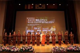 - [포교사단] 불기 2567(2023)년 3월 12일 포교사단 출범 23주년 및 제10회 포교사의 날 기념법회가 동국대학교 중강당에서 오후 2시 성대히 개최됐다. 이날 법회는 포교사단 정기 대의원총회와 같이 열렸으며 포교원 포교연구실장이신 용주스님과 포교원 사무국장 혜안스님이 참석해 주셨고 범일 김영석 포교사단장과 각 지역단 단장 및 임원, 운영위원들이 참석하였으며 전직 사단장과 운영위원들, 그리고 1기부터 선배 포교사들이 참석했다. 행사는 2시 전직 임원들로 구성된 수메다회 정기총회가 열렸으며 장소 사정으로 양해를 구하고 현직 임원총회와 같이 개회가 됐다. 수메다회는 김기병 의장의 개회로 시작되어 선,후배 포교사들이 포교사단의 발전을 위한 의견을 개진하는 자리가 됐다. 같은 시각 본회의장은 식전 축하행사가 진행 됐으며 서울 풍물놀이연구소의 우리가락 연구원들의 사물놀이로 문을 열고 인간문화재 양길순 선생의 전수 조교인 김현주님의 도살풀이 춤, 서울지역단에서 포교사단 합창단 지휘를 맡고 있는 이준형 포교사의 무대와 불교명상가수인 김무한님의 공연이 진행됐다. 포교사단장과 각 지역단 단장들이 입장하고 대의원 총회가 개최됐다. 총회후 스님과 귀빈들이 입장하고 스님과 함께 각 지역단 단장들이 단기 앞에서 함께 기념사진을 촬영하고 삼귀의와 우리말 반야심경으로 법회를 시작 했다. 귀빈소개에 이어 등혜 배동학 수석부단장이 경과보고를 하고 김영석 단장의 기념사가 이어졌다. “종단의 도제, 역경, 포교 3대 사업에 뿌리를 두어 1982년 1기 포교사 배출로 시작된 포교사 신행 및 계층 포교활동은 2000년 3월 12일 포교사단 출범으로 결실을 맺게 되었다.“ ”포교사와 포교사단은 종단의 소중한 자산이라 할 수 있습니다. 포교사단은 출범 23년의 역사 속에서 사찰 신행 및 계층 포교활동을 한시도 쉬어본 적이 없으며 작년에 이르러서는 종단의 현안 사업과 불교계의 발전을 위해 큰 역할을 했다.“며 평가를 하고 금일 수상한 모든 수상자들께 축하를 드리고 여러 재교육을 통해 포교의 지평을 더 넓고 크게 열어가고자 한다며 포부를 밝혔다. 이어서 6,7대 단장을 역임한 임희웅 전 단장이 격려사를, 1기 김경태 포교사가 축사를 하며 출범 23주년을 축하했다. 본격적인 시상식에 앞서 포교현장에서 열정과 헌신으로 10년, 20년을 계속해서 불법홍포에 앞장서서 활동해온 포교사들에 대해 10년,20년 근속휘장을 대표로 박은호 포교사(10년), 오순석 포교사(20년) 두분이 수여 받았다. 뒤이어 진행된 시상식은 포교사단장과 포교연구실장 용주 스님이 시상을 했으며 수상자는 표와 같다. 포교사단 출범 23주년 및 제10회 포교사의 날 포상자 훈격 지역단 개 인 지역단 팀 총무원장상 대전충남 무상행 조명숙 대 구 염불포교 홍련팀 포교원장상 부 산 도움 강재실 부 산 자원봉사금수팀 대 구 경월 김만철 대전충남 대전불교문화봉사2팀 대전충남 연화심 정이정 광주전남 서부사찰문화해설팀 광주전남 정안 김경태 전 북 익산 염불봉사팀 전 북 성담 강석훈 충 북 북부군포교팀 강 원 여래심 장미화 경 남 중부 청소년포교정진팀 충 북 법강 한대수 인천경기 효명화 이용경 경 남 법원 최성환 울 산 법종 김무용 제 주 청정 김녕규 경 북 성관 김호근 총재상 서 울 경담 이원굉 부 산 자원봉사보현팀 부 산 보현심 송주희 대 구 본부 찬불포교팀 대 구 범해 서영덕 대전충남 동부 지역봉사북부팀 대전충남 법경 김팔수 광주전남 북부1 사찰문화해설팀 광주전남 인혜 이서현 전 북 익산교정교화팀 전 북 강봉 구강식 강 원 강릉 군포교2팀 강 원 해인 이동섭 충 북 남부 불교문화봉사팀 충 북 자유수 이미경 인천경기 남부총괄사회봉사팀 인천경기 선래화 이진숙 경 남 중부청소년포교행원팀 경 남 혜공 장희도 울 산 군포교보현팀 울 산 다연등 조성남 경 북 지역봉사 구미팀 제 주 수일행 김정선 경 북 대공 양용철 단장상 서 울 천정화 천정화 부 산 중동부 군 청파팀 법경심 김미주 지역 청소년여래팀 부 산 인휴 황용대 지역봉사범어팀 효재 윤영준 대 구 불교문화해설봉황팀 보월각 황영순 지역봉사팔공팀 대 구 수선심 남궁진선 불교문화해설관음팀 월정심 김봉남 광주전남 남부다문화팀 보덕화 신경순 동부사찰문화해설2팀 대전충남 연향심 김금순 전 북 전주사찰문화해설팀 대덕심 황금옥 강 원 동해 어린이청소년팀 광주전남 공덕화 윤영애 속초 지역봉사2팀 월인 손규호 충 북 청주 군포교1팀 전 북 자운 김재성 청주 염불포교1팀 강 원 연화심 김복희 인천경기 남부총괄염불봉사팀 일지행 최영선 경 남 동부지역봉사광명팀 충 북 길상 박상후 서부불교문화직지팀 정진화 조명숙 울 산 염불포교연화팀 인천경기 무주 박철희 경 북 행사지원팀 혜조 김용선 불교문화부석팀 경공 정성광 경 남 감로심 정채경 보현행 성순옥 울 산 옥담 송기동 제 주 감로수 현지원 경 북 천수안 이미호 수경지 최영민 계 개인상 52 + 팀상 37 = 총 89 시상식이 끝난 후 포교원장 스님의 치사를 포교연구실장 용주스님이 대독했으며 “포교사단 출범 23주년과 제10회 포교사의 날을 진심으로 축하합니다.” “보