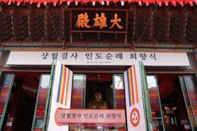 - [포교사단] 불기2567(2023)년 3월 22일 오후 2시 상월결사 인도 순례단이 공평 사거리부터 조계사까지 도열한 포교사단 및 일반 신도들의 환영을 받으며 조계사에 도착하여 부처님께 무사귀환과 여법한 여정을 감사드리는 회향법회가 열렸다. 지난 2월 9일 새벽 조계사에서 고불식을 올리고 대장정에 올라 43일간 회주 자승 스님과 108명의 사부대중이 인도와 네팔 불교성지 1,167Km를 도보로 순례후 원만회향 함을 부처님전에 고하기 위해 조계사에 도착했다.일행의 무사 귀환을 축하하기 위해 총무원 장 진우 스님과 전국 본·말사 스님들, 중앙종회의원 스님들, 불교단체장들과 여야 국회의원들, 문화계, 정재계 대표들과 정부임원들이 참석했으며, 포교사단에서는 범일 김영석 포교사단장, 등혜 배동학 수석부단장과 전국 지역단 단장들, 임원들이 참석하여 자리를 빛냈다. 행사장은 전국에서 올라온 신도들이 조계사 안팎으로 약 3만여명이 운집하여 일행을 축하하며 맞이했다. 포교사단은 질서유지와 일행 행사장 유도, 꽃비 뿌리기, 깃발 봉송등 각 분야에서 봉사 활동을 실시하여 행사의 원활한 진행을 도왔다. 12시 30분 축하공연이 이루어지는 가운데 일행이 탄 버스가 공평 사거리에 도착하여 대형을 정리하고 공평사거리부터 조계사까지 풍물단과 포교사단의 기수단을 선두로 하여 행진을 시작하여 양옆으로 도열한 포교사들의 꽃비세례를 받으며 행사장인 조계사로 향했고 행렬의 끝에 상원결사 회주 자승스님이 큰 환호를 받으며 조계사 경내로 입장했다. 삼귀의례와 반야심경을 봉독하고 상월결사 인도순례 총도감 호산스님의 경과보고가 있었고 화환증정식이 간단히 진행되고 총무원장 진우스님의 치사가 있었다. 이어서 윤석열 대통령의 축사를 박보균 문화체육부장관이 대독 했으며, 상월결사 회주인 자승스님의 회향말씀이 있었다. “사부대중 모두가 전법의 길에 나서야 한다.”고 강조를 한 회향말씀 뒤에 순례단 전원의 108배 가 있었으며 사부대중은 의자에서 일어나 저두배로 동참했으며 뒤이어 사홍서원을 끝으로 회향법회가 마무리 됐다. 포교사단장과 지역단 단장, 임원들은 법회 후 인도순례를 무사히 마치고 돌아온 포교원장 범해스님을 예방하여 축하를 드렸다. 포교원장 스님은 포교사들이 항상 앞장서서 봉사와 포교의 길을 잘 걷고 있고, 오늘 법회에서도 큰 역할을 잘 수행해 주었다고 격려의 말씀을 주셨다.