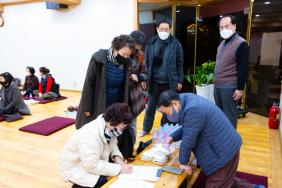 - [울산] # 매주 활동하고 있는 울산팀입니다. 2월 19일 일요일 팀활동에 공덕행, 심일화님, 만법지님, 정행님, 대성님, , 덕산님, 여정화님 7명 참석했습니다. 여정화/조호정님 포교사 복권이 확정되어 앞으로 저희 팀에서 함께 활동하게 됨을 다 함께 축하하였고, 여정화님~ 포교활동 일선에서 앞으로 사찰문화해설사로 활발한 활동 응원합니다. 만법지님이 준비해 오신 딸기와 함께 커피 한 잔의 시간을 가졌고 그리고 지난주에 이어서 오늘도 연꽃잎 비비기 운력하였고~ 연꽃잎 비비기가 처음인 대성님, 덕산님은 일타강사 총무스님의 비법을 전수받으셨어요^^ 매년 하시는 만법지님, 여정화님은 전문가 포스가 느껴집니다. 사부대중이 함께하니 작업이 빨리 끝났습니다~ 다음은 향로전에서 정행님, 대성님, 덕산님, 여정화님 공양미 소분 작업^^ 쌀 한 톨에 깃든 모든 이의 노고와 고마움을 생각하며 한 톨도 흘리지 않도록 장성스럽게 작업하여고 현미 쌀 5kg 씩 소분 포장해서 차곡차곡 쌓아 두었습니다. 부처님 오늘도 감사합니다 _()_ 조사전 앞 청매화는 꽃봉오리를 금방 터트릴 듯합니다. 다 함께 깨달음의 꽃을 활짝 피우기를 발원합니다._()_ 공덕행/김현주