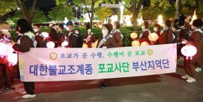 - [부산] 불기2566(2022)년 부산연등축제 부산지역단 계획(안) 일시 : 2022년 4월 30일 17시∼22시 장소 : 부산시민공원 및 서면일대 1. 군별 집합지도(18시∼21시) : 시민공원 잔디광장 ◆ 관리책임자 : 단장 법해 송재린 1) 전체 집행자 : 정관 강태산(사무국장) 2) 군별 집합하는 현장에서 지도하는 책임자 가. 1군 집합 지도를 하는 팀장 : 동부지역총괄 팀장(여진/최정자) - ①금샘, ②묘광사, ③극락정토, ④연화, ⑤원자력의학원 나. 2군 집합 지도를 하는 팀장 : 서부지역총괄 팀장(인휴/황용대) - ①에어, ②청파, ③금어죽비, ④진공묘유, ⑤자운 다. 3군 집합 지도를 하는 팀장 : 남부지역총괄 팀장(일백련/조봉례) - ①항만정사, ②해운사, ③인드람, ④진여회, ⑤금수, 선재(출석후 원찰) 라. 4군 집합 지도를 하는 팀장 : 중동부지역총괄 팀장(본각/김영신) - ①금정, ②마야, ③연꽃, ④금포, ⑤범포, ⑥원효, 동산, 범어(출석후 원찰) 마. 5군 집합 지도를 하는 팀장 : 부단장 (도명/주태돈) - ①동의, ②마하연, ③보현, 룸비니(출석후 원찰) 바. 6군 집합 지도를 하는 팀장 : 지역중앙총괄 팀장(관음화/김옥희) - ①지국천, ②다문천, ③영산회상, ④다문화, ⑤길잡이(1명 출석후 원찰) 사. 7군 집합 지도를 하는 팀장 : NGO분야총괄 팀장(효재/윤영준) - ①문화예술, ②생명나눔, ③여래, ④무소유 ⑤사단지원,⑥ 녹야원(출석후 원찰) 2. 제등행진 시 군별 질서 지도 (19시∼21시 30분) 가. 펼침막(2m*2m) 부단장 4인 가. 도로변 “가로 펼침막(1m*4m)” 들고 행진하는 자 1군~2군 : 동부지역총괄팀장 최정자, 서부지역총괄팀장 황용대 3군~4군 : 남부지역총괄팀장 조봉례, 중동부지역총괄팀장 김영신 5군~7군 : 지역중앙총괄팀장 김옥희, NGO분야총괄팀장 윤영준 3. 제등행렬 출발순서 - 행렬은 4열로 진행한다. 가. 펼침막(2m*2m) 부단장 4명 나. 단장, 자문위원 다. 감사, 징계위원 라. 1군, 2군, 3군, 4군, 5군, 6군, 7군순으로 출발한다. ※ 포교사단은 13번째 출발함 4. 팀장 업무분장(오후 5시 30분까지 집결지 출석) 가. 팀 출석 체크 안내(오후 5시부터 출석 체크) 나. 연등, 손잡이등 수령(오후 5시부터 배부 예정) 다. 어깨띠 수령 배부 및 반납 라. 참여자 저녁 식대 수령 - 참여자 대리 서명 절대 불가 5. 총괄팀장 업무분장(오후 5시 30분까지 집결지 출석) 가. “가로 펼침막” 수령 및 반납 - 황용대, 김영신, 윤영준 총괄팀장. 나. 군별 집합지도 업무 다. 어깨띠 배부 및 회수 6. 부단장 업무분장(오후 5시 30분까지 집결지 출석) 가. “가로 펼침막” (2m*2m) 행진 나. “가로 펼침막” 수령 및 반납 - 이양희 부단장 다. 군별 집합하는 현장에서 지도 및 업무지원 7. 사단지원팀 업무분장(5시까지 집결지 출석) 가. 팀별 출석 체크 나. 연등, 손잡이등 배부 ########################################### 3년 만에 대한불교 조계종 제14교구본사 범어사 를 중심으로 태고종, 천태종, 원불교, 각 불교종단에서 불기2566(2022)년 부처님오신 날 봉축연등회가 시민공원에서 개최되어서 많은 부산시민들이 가족 손을 잡고 함께 동참해서 모처럼 웃음꽃이 피는 행복한 시간을 보냈습니다. 부산지역단 법해 송재린 단장님을 중심으로 포교사 500여명이 동참해서 손에손 오색등을 들고 거리를 행진하며 코로나에 지친 많은 대중과 함께 하며 모처럼 활력넘치는 시간을 보내며 아직 마스크는 아직 하고 있지만 얼마지나지 않으면 부처님의 가피력으로 3년전의 일상으로 돌아갈 수 있다는 희망을 봅니다