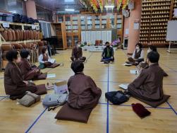 - [울산] 청보리팀 활동보고합니다 2022,05,13 금요일 저녁7시 정토사 삼천불전 구선향 팀장님 연화행 단장님 석전 고문님 지문 수석부단장님 보림화님 심정님 명성수님 정화심님 여련성 9명 참석 부처님오신날 행사를 했지만 그래도 청보리팀활동은 그대로한다 그동안 코로나로 못했던 팀 활동을 이제는 해야하기에 모였다 먼저 울산지역단 단장님께서 부처님 오신날 봉사하신 청보리팀에 감사말씀 해주셨다 그리고 봉사하면서 어려운점 불편한점을 토론도 하고 그 과정에 중요한 것이 있었다 왜 관욕을 합니까? 물은 몇번을 부어요? 왜 돈을 넣어야 해요? 꽃은 왜 올려요? 이런 질문들이 있었다고 해서 우리는 다시 한번 더 공부를 했다 그리고 팝콘기계를 담당하는것에 대한 의견도 있었다 그리고 우리가 하는 팀활동 행원참법 수행과 금강경 수행을 매주 금요일 당번제로 돌아가면서 집전을 해나가기로 했다 늦은 기수는 쪼매 걱정은 되지만 그래도 열심히 하기로 마음 먹고나니 기대도 되고 다시 시작한다고 하니 기쁘기도 하다 집에서 혼자 하는것도 좋지만 그래도 절에와서 함께 하는것이 우리 불자들은 신심이 더해진다 연화행 단장님께서 보시하신 떡과 음료를 먹고 오늘은 마무리를 했다 감사합니다. 글 : 여련성/김홍연/24기