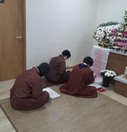 - [서울] 불기 2566(2022)년 3월 15일 저녁 19시30분부터 21시까지 신천 연합병원 장례식장 특실에서 대한불교조계종 포교사단 서울지역단(단장 성수 서정각) 염불포교팀의 포교사들이 극락왕생 염불을 했다. 본자연 장희자 포교사, 명광월 권정숙 포교사, 적묵행 김인엽 포교사는 우리말 상장례 의식집의 의식에 따라 극락왕생 염불 의식을 했다. 이건호 영가님의 극락왕생을 기도했고 코로나19의 국가재난상황에 따라 마스크를 쓰고 의식을 진행했다.