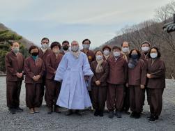 - [대구] 지난 5일 대구지역단 단장이신 이현숙 단장님과 김동훈 수석부단장님ㆍ부단장님과 지역단 총괄팀장님을 비롯하여 몇몇분이 감포도량 무문관에 계시는 회주큰스님(우학)께 세배를 드리러 갔습니다. 코로나가 심한탓에 실내에서는 만남을 못가지고 무문관앞에서 선채로 3배의 예를 올렸습니다. 회주스님께서는 고맙다하시면서 신간 무일우학 설법대전이란 책을 선물로 주셨습니다