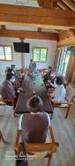- [울산] 9월12일 일요일 석남사 팀활동에 평담님, 원명지님, 공덕행님, 심일화, 만법지님, 태성님, 정행님, 각심님 참석했습니다. 오전 10시~ 한 주를 보내고 팀활동을 시작하는 저희들만의 소소한 미팅시간~ 집에서 하나씩 챙겨온 과일 간식이 어느새 한상입니다. 내린 커피 한 잔의 여유와 평담님의 전문위원 회의 하신 내용을 공유하며 포교사단 소식도 전했으며, 내년에 맡을 울산팀장과 총무, 후기담당까지 벌써 내정된 우리팀~ 기수 순서대로 내려가면 막내 각심님 차례는 14년 뒤라는 얘기에 하하호호~ 즐거운 소통과 공유의 시간입니다. 추석맞이 대청소 2탄입니다~ 해설사의 집 청소, 사리보탑전 대웅전 조사전 방석 말리기 미션~ 먼저 해설사 집 청소~ 좀 더 넓게 쓰고자 기존 있던 책상, 물건 줄이고 비우고 나니 방이 훤해졌습니다. 청소하는 틈에 다각실 스님께서 싣고 온 사과박스 주지스님께서 올해도 저희 팀원들 추석선물 나눠주셨네요. 명절 때마다 늘 챙겨주심에 감사합니다. 다음 장소는 사리보탑전~ 방석 털고 햇볕에 말리기~ 다음은 대웅전~ 방석커버는 세탁으로 분리해서 털고 널고 햇살 좋은 가을 날, 대웅전 앞 만리향 향기가 은은하게 퍼지는 오후입니다. 전각마다 방석 햇살에 말려 놓고서, 오늘은 공부하자, 해설사의 임무는 해설이다, 입이 굳기전에 자꾸 연습하자~ 팀원들 돌아가며 팔상도 두 장면씩 해설하며 질문하고 응답하는 시간가졌습니다. 먼저 선두는 공덕행님~ 도솔래의상, 비람강생상 해설 바로 이어 평담님의 심화학습~ 질문에 알송달송, 퍽 떠올라 답하기도 하며, 주고 받으며 공부했습니다. 다음 사문유관상, 유성출가상은 심일화가 해설~ 벤취에서 듣고 계셨던 노부부께서도 잘 들었다는 의미의 박수까지~ 오랫만에 하니 긴장 되었지만 역시나, 해설사는 해설할 때가 제일 신납니다. 다음은 태성님 차례~ 설산수도상, 수하항마상 해설 질의응답하며 서로 해설공부에 시간 가는 줄 몰랐네요. 다음은 만법지님~ 떨리는 목소리로 차근차근 마지막 쌍림열반상은 정행님~ 부처님의 마지막 자등명 법등명의 열반유훈은 꼭 제대로 알고 전달하자는 평담님의 조언을 마지막으로 공부 끝~~ 공부 끝내고 물 한 모금 목 축이고~ 따뜻한 햇살에 잘 말려진 뽀송한 방석 정리정돈 뒤집고 털고~ 각 맞춰 스님, 신도용 방석 이쁘게 정리 대웅전 방석 털고 계시는 원명지님과 평담님^^ 모든 번뇌는 가라~ 하는듯 퍽퍽 소리 나도록 터시네요. 마지막 팀활동은 사리보탑전 법공양 거치대 털고 닦고 쓸고~ 추석맞이 대청소 오늘도 미션 완료^^ 열심히 봉사하고 부처님께 하산 인사하는 이 시간이 참으로 행복합니다. 모두 수고하셨습니다.^^ 심일화/정호경( )( )( )