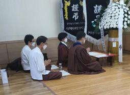- [서울] 불기 2565(2021)년 8월 7일 저녁 6시30분부터 8시까지 안양메트로병원 장례식장 2층 1호실에서 대한불교조계종 포교사단 서울지역단(단장 여여성 정청현) 염불포교팀의 포교사들이 극락왕생 염불을 했다. 본자연 장희자 포교사, 상영 이성주 포교사, 명광월 권정숙 포교사, 선원 남호석 포교사는 우리말 상장례 의식집의 의식에 따라 극락왕생 염불 의식을 했다. 백영길 영가님의 극락왕생을 기도했고 코로나19의 국가재난상황에 따라 마스크를 쓰고 의식을 진행했다.