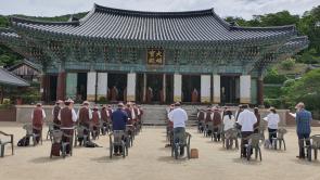 - [광주전남] 불기2565(2021)년 5월 26일(수) 광주전남지역단(단장 강윤구)은 승보종찰 송광사에서 2021년 하안거 결제법회를 봉행 하였습니다. 오전 10시 범망경포살을 시작으로 11에 사시불공을 모시고, 오후 1시 방장스님 법어가 있었습니다. 방장스님께서는 출가사문들이 세간을 벗어나 출세간의 도를 구하는 이 일이 2565년의 세월 동안 변함없음이 참으로 기특한 일이며 광주전남 포교사들이 안거결계포살에 동참함 도한 기특하다고 말씀 하셨습니다. 금번 포교사 하안거 수행도 예년과 같이 재적사찰이나 편안한 정소에서 개별로 정진하고 결제와 해제법회만 송광사에서 봉행합니다. 아울러 매월 4째 토요일에 포살및 금강경 독송기도와 함께 수행을 점검하여 나가기로 하였습니다. 감사합니다.