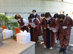 - [서울] 불기 2565(2021)년 6월 1일 오전9시30분부터 12시까지 서울 시립승화원 벽제화장장(승화원 2층 공영장례 빈소)에서 대한불교조계종 포교사단 서울지역단(단장 여여성 정청현) 염불포교팀의 포교사들이 극락왕생 염불을 했다. 정도행 김나연 포교사, 각원심 양순희 포교사, 선원 남호석 포교사는 서울시 무연고자를 위한 우리말 상장례 의식집의 의식에 따라 극락왕생 염불 의식을 했다. 성멸불상 두분의 영가님의 극락왕생을 기도했고 코로나19의 국가재난상황에 따라 마스크를 쓰고 의식을 진행했다.