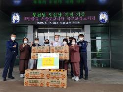 - [서울] 불기 2565(2021)년 5월 17일 오전 10시 대한불교조계종 포교사단 서울지역단 북부총괄 교정교화팀 포교사들이 부처님오신날을 맞아 서울 남부구치소에 보시했다. 이날 전달된 오렌지는 서울 남부구치소 수감자 2,000명 분이다. 참여한 포교사는 정진향 김정희 포교사, 통원 김호표 포교사, 금강 임덕신 포교사, 마니행 이명숙 포교사, 명원심 서순자 포교사, 대법신 정신윤 포교사, 해명 지세민 포교사이다. 한편, 대한불교조계종 포교사단 서울지역단 북부총괄 교정교화팀 포교사들은 서울 남부구치소에 부처님의 말씀을 전하는 일을 꾸준하게 하고 있다.