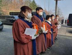 - [울산] 지난3월7일 한국불교역사문화기념관 에서 포교사단 출범 21주년 및 제8회 포교사의 날 기념법회가 있었습니다. 저희 울산지역단 에서는 명산 황영규포교사님께서 포교원장상, 화엄행 박정현포교사께서 총재상, 도신 김인열포교사께서 포교사단장상을 수상하시게 되었습니다. 포교사단장상은 지역단에서 시상하는 걸로 정해졌으며,총재상은 화엄행님의 개인적인 사정으로 불참하셨고, 본단의 요청으로 각지역단 단장님과 포상자만 참석이 가능하도록 되어있어서 이번에는 단장님과 명산님 두분이서 다녀 오셨습니다. 포상받으신 분들께 축하 인사 드립니다. 보리심/조성남 간사