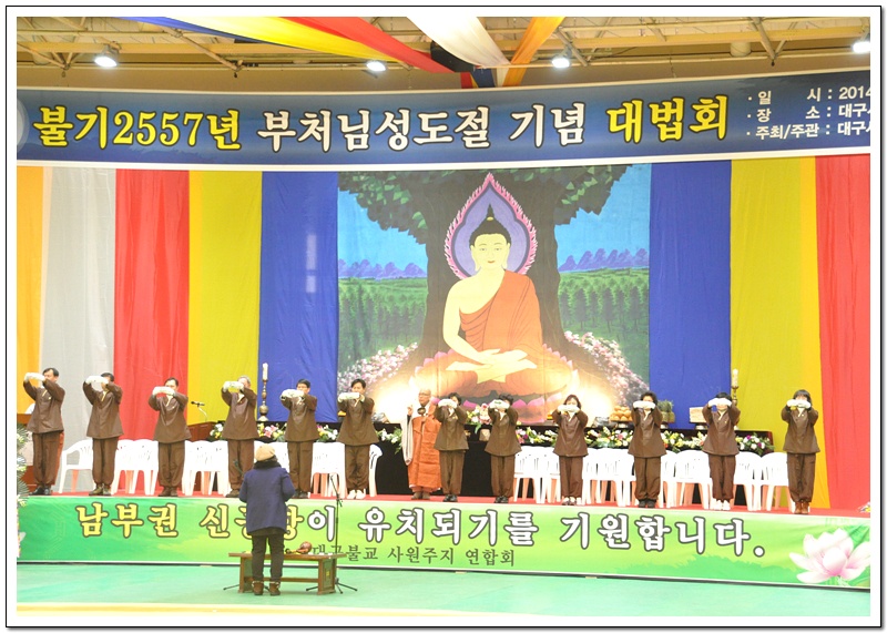 - [] 불기2557(2013)년 12월1일 대구 경북 지역단 장한상 단장님 외 300여명이 한자리 모여포교사 전진대회를 봉행하였다.
