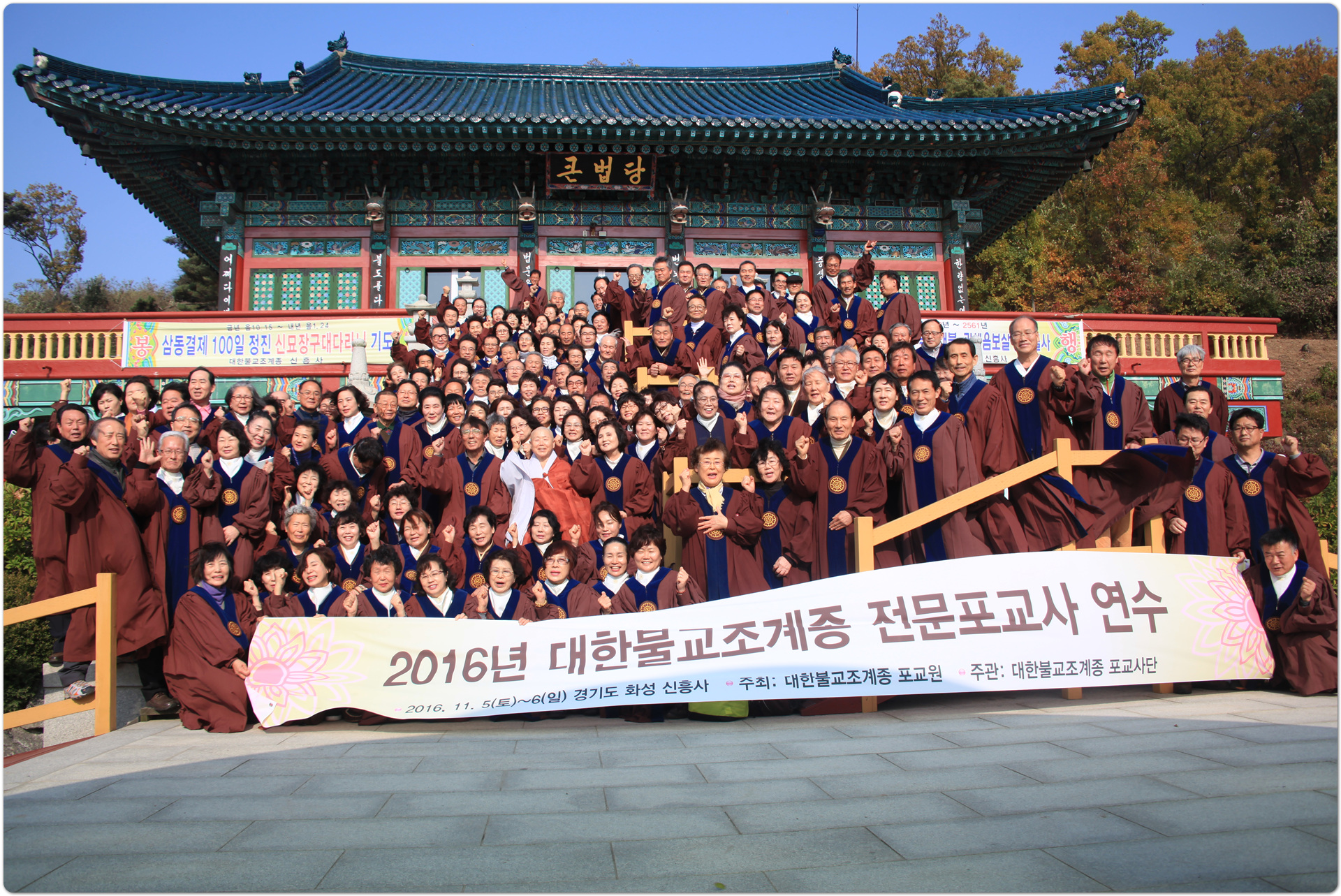 - [] * 일 시 : 2016.11.5~11.6.* 장 소 : 화성 신흥사 수련원주지스님의 큰 원력에 감동감화 받은 전문포교사들은 이번 연수를 통해 실천을 다짐하고 약속하였습니다. 이 연수를 위해 수고하신 많은 사부대중들께 깊은 감사드립니다.함께하여 행복한 시간이었습니다.모두가 행복하길 발원합니다.