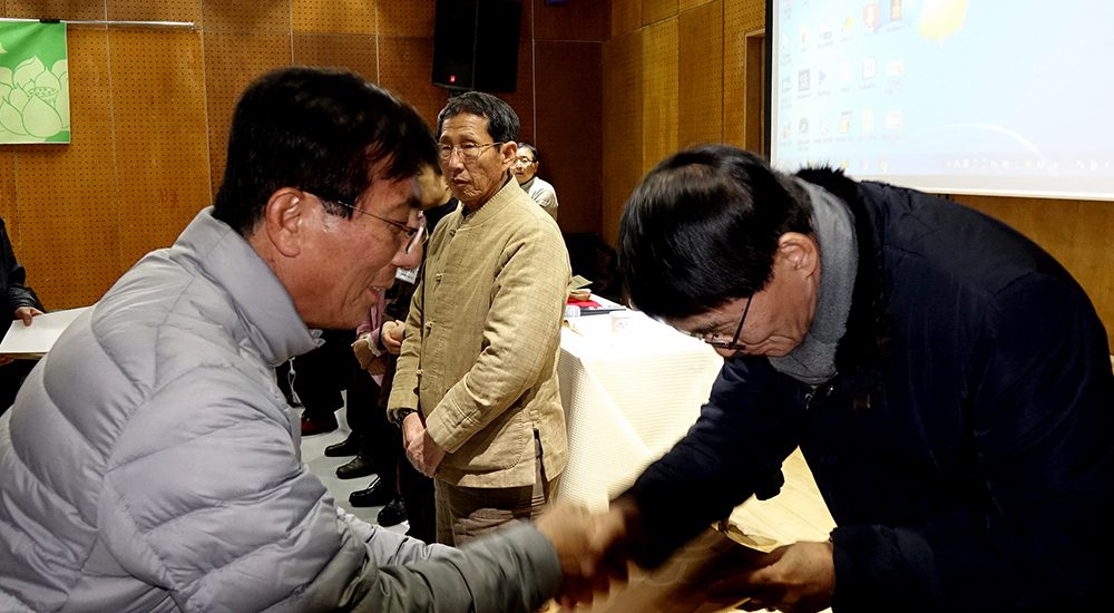 - [] (* 개인 컴퓨터와 포교사단 홈페이지의 인터넷 용량 제한으로 사진자료를 한 곳에 올리지 못하고 코너와 두곳에 나누어 올릴수 밖에 없음을 양해하여주시기 바랍니다.대한불교조계종 포교사단 제10대 집행부 대의원 대회겸 연수회가 지난 1월 27일(토)-28일까지 한국문화연수원(충남 공주시 사곡면 마곡사로 1065/마곡사 인근)에서 1박 2일 일정으로 열렸다. 포교원 포교연구실장 원철스님과 포교국장 노휴스님, 윤기중 포교사단장, 장봉수 서울지역단장(직대), 김문홍 제주지역단장 등 50여명의 포교사단 10대 집행부 운영위원들이 참석한 회의에서는 2017년도 예산결산안 승인과 함께 올해(2018년도) 포교활동과 사업계획안도 토의, 최종안으로 확정했다.