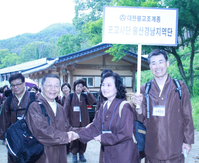 - [] 제 10차 8재계수계실천대법회 참가하기전 이모저모 ♣사진/글 : 덕산 이승선♣ ♣포교사단 울산경남지역단 자원봉사 행원팀 홍보위원♣ ♣E-Mail : lss5464@hanmail.net♣ 송광사 입구에서 정혜 임희웅 중앙단장님과 울산경남지역단 선행심 이문자 단장 상봉 악수!!! 울산경남지역단 제 10차 8재계실천대법회 참가하기 위해 질서정연하게 줄맞추어서 걸어가는 모습... 울산경남지역단 포교사님들 단합된 모습입니다. 포교사님 힘드시겠어요. (울산경남지역단 포교사님들에게 나누어줄 무거운 짐) 진해 대광사 제 17기 3총 포교사 환휴 박기주 포교사님 인기 만점입니다!!! 울산경남지역단 참가자 점명부 싸인하는 중