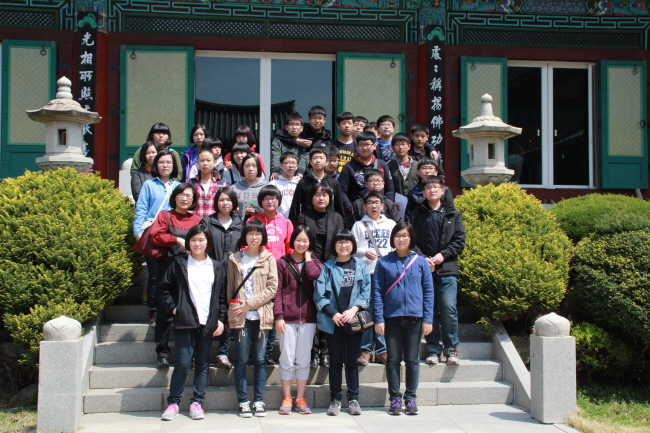- [] 불기2556년 4월 15일(일) (사)진해지회 파라미타 문화재지킴이 연합법회 관련 하여 법회전 학생들이 씩씩하게 오고 있는 모습, 선생님들의 출석 체크, 학생 들의 절 입구에서 합장 반배하기, 법회 후 빵 및 음료수 먹기 등의 사진입니다. 사진/글 : 덕산 이승선 울산 경남지역단 자원봉사 행원팀/ 포교사단 홍보위원