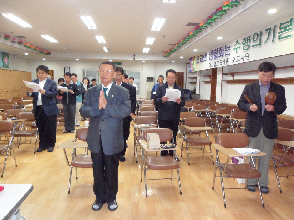- [] 불기 2555년 6월 26일(일) 13:00부터 17:00까지 대한불교조계종 포교사단 부산경남지역단 분야별 연수교육을 제14교구본사 범어사 설법전에서 범어사 주지 정여 큰스님, 포교국장 법귀 스님을 모시고 진행하였다. 삼귀의, 한글반야심경, 포교사의 노래, 포교사 다짐, 축가, 단장(일행 심재덕) 인사말, 포교사단장(정혜 임희웅) 환영사, 범어사 포교국장(법귀 스님) 평가 말씀, 청법가, 범어사 주지 정여 큰스님 법문, 제14교구본사 범어사 주지 큰스님 표창 (지원 정영천 감사, 해각 김진홍 감사, 원경 이해일 사무국장), 중앙사단장 표창(해량 어기명, 도음 강재실, 보륜 손규), 지역단장 표창(불광 김충의, 도일 진상근, 화림 박용식), 9개 분야별 위원장 활동보고 발표, 중앙포교사단장(정혜 임희웅) “분야별 활동 평가”, 전문포교사(법륜 양성홍) “지역단 활성화 방안” 관련 강의, 설문지 작성, 지역단장(일행 심재덕) 분야별 활동 평가, 범어사 포교국장 법귀 스님 강평, 공지사항, 사홍서원 순으로 행사를 가졌다. 사진/글 : 이승선 부산․경남지역단 자원봉사행원팀/ 포교사단 홍보위원
