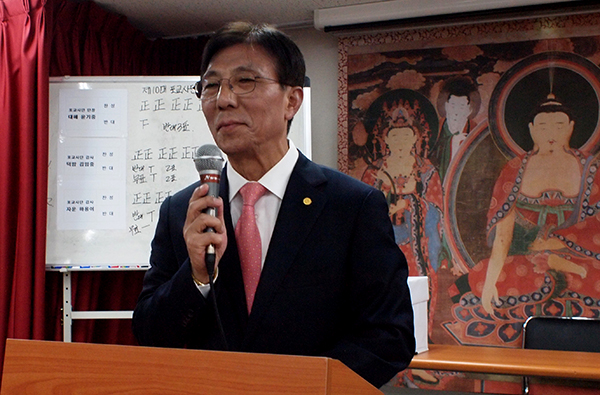 - [] (* 개인 컴퓨터와 포교사단 홈페이지의 인터넷 용량 제한으로 사진자료를 한 곳에 올리지 못하고 코너와 두곳에 나누어 올릴수 밖에 없음을 양해하여주시기 바랍니다.대한불교조계종 포교사단 제10대 집행부 대의원 대회겸 연수회가 지난 1월 27일(토)-28일까지 한국문화연수원(충남 공주시 사곡면 마곡사로 1065/마곡사 인근)에서 1박 2일 일정으로 열렸다. 포교원 포교연구실장 원철스님과 포교국장 노휴스님, 윤기중 포교사단장, 장봉수 서울지역단장(직대), 김문홍 제주지역단장 등 50여명의 포교사단 10대 집행부 운영위원들이 참석한 회의에서는 2017년도 예산결산안 승인과 함께 올해(2018년도) 포교활동과 사업계획안도 토의, 최종안으로 확정했다.