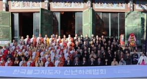 - [포교사단] 불기2570(2026)년 1월 27일 오후 2시 사단법인 한국불교종단협의회 주최로 종로구 견지동 조계사 대웅전에서 한국불교지도자 신년하례법회가 개최됐다. 명종에 이은 예식 진행 후 한국불교종단협의회 부회장인 대한불교조계종 종회의장 주경 스님은 “오늘 부처님 전에서 나라의 태평과 국민의 편안함을 일심으로 서원하며, 참석하신 모든 분에게 부처님의 대자비가 가득하고 국운이 융창하기를 기도합니다“며 개회사를 하고 헌등과 헌화가 진행됐으며 부처님께 큰절 3배를 올리며 신년하례를 가졌다. 한국불교태고종 총무원장 상진스님의 축원과 입정 후 대한불교조계종 총무원장 진우 스님의 신년법어를 들었다 진우 스님은 “지금 이 시대에 불교는 무엇으로 세상에 응답할 것인가“로 화두를 던지고 ”선명상과 마음돌봄 프로그램을 공공적 수행문화로 확산 하며, 생명존중과 생태보살행을 통해 미래를 위한 윤리적 대안을 제시하고, 사회적 약자와 소외된 이웃에 자비 실천을 더욱 강화해야 합니다. 청년 세대와 새로운 시대의 불교 언어로 소통해야 합니다.“며 신년법어를 전했다. 이어서 대한불교천태종 총무원장 덕수 스님의 신년인사와 주요 내빈들의 축사가 있었으며 한국대학생불교연합회에 장학금을 전달하는 시간을 가졌다. 대한불교진각종 능원 통리원장의 신년발원과 사홍서원으로 하례식을 마치고 대웅전 앞에서 기념사진을 촬영하고 식을 끝냈다. 대한불교조계종 포교사단은 희재 강의수 포교사단장과 연화행 정연숙, 법경 박은호, 평전 하용수 부단장이 참석하여 자리를 빛냈다.