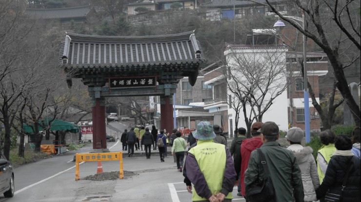 - [좋은인연] 좋은인연 어르신 네 번째 나들이 포교사단 부설 좋은인연(이사장 곽명희)은 불기2559년 11월 23일 월요일 어르신 나들이 행사를 가졌다. 이번 나들이는 충청남도 논산시 반야산(般若山) 관촉사, 부여군 능산리 고분군, 부여읍 쌍북리 고란사를 방문하는 일정으로 총 35명이 참여했다. 오전 8시 조계사 일주문 앞에서 출발한 어르신들은 논산에서 합류한 대전충남지역단 민병수 포교사의 안내로 은진미륵으로 유명한 관촉사, 백제왕릉으로 알려진 능산리 고분군과 낙화암과 고란초로 유명한 고란사를 방문했다. 특히 고란사 약수는 한잔에 3년씩 젊어진다는 설화로 어르신들이 즐거위 하시며 몇잔씩 드시는 모습이 행복해 보였다. 궂은 날씨로 출발하였으나 가는 도중 비가 멎어서 모처럼 어르신나들이가 즐거운 하루가 되었고 은진미륵과 함께 옛 추억에 잠겨보는 뜻깊은 하루기 되었다. 논산 관촉사에서 능산리 고분군 왕릉원에서 고란사