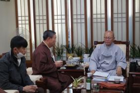 포교원장 지홍스님 포교부장 정인스님과 포교사단 포교사들의 차담시간