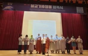 - [인천경기] 6월15일(월) 14시에 한국불교역사문화기념관 전통문화공연장에서 불교기후행동 발족식이 열렸다. 이날 행사는 날로 지구 온난화로 인해 날로 심각해져 가는 지구 환경을 지키고자 하는 취지로 불교계에서 미광스님을 중심으로 해서 결성되었다. 천도교와 기독교. 천주교, 원불교등에서 결성을 축하하고 연대 지지를 하는 발표가 있었다. 인천경기지역단에서는 단장님을 비롯한 5분의 포교사가 참여하여 불교기후행동의 발족식을 축하하고 성명서 낭독을 하였다.