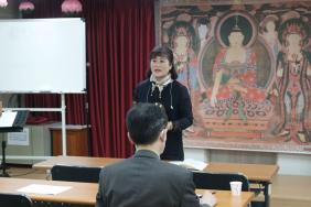 - [서울] 불기 2564(2020)년 4월 26일 호국일취사에서 대한불교조계종 포교사단 서울지역단의 서부총괄 군3팀의 영상포교 알요법회가 열렸다. 서부총괄 군3팀은 코로나19의 국가재난상황으로 인하여 3월 첫째주부터 군 장병에게 영상법문을 통하여 법회를 진행하고 있다. 4월 4주의 법문은 도법 김완빈 포교사가 설법을 했다. 영상법문에서 삼귀의를 봉행한 뒤 설법이 이어졌다. 도법 김완빈 포교사는 명상에 대한 이해라는 주제로 이야기를 했다. 도법 김완빈 포교사는 "코로나19의 사회적 거리두기 상황에서 3월부터 법회가 열리지 않아서 영상으로 부득이하게 만나게 되었다면서 하루빨리 코로나19가 종식되길 기원하고 군 장병 여러분도 건강에 유의하면 좋겠다"고 말했다. 그는 참선과 명상에 대하여 살펴보았는데 참선은 선을 수행하다는 뜻으로 인도의 팔리어의 자나(산스크리트어의 야나)가 중국어로 음치되어 선나가 되었고 선나가 선 또는 젠으로 줄었다고 설명했다. 자나가 영어로 Meditation이 되었는데 이 말이 한글로 명상으로 번역되었고 선과 명상이 같은 자나라는 단어를 번역했는데 내용상으로는 동일한 것을 의미한다고 보았다. 도법 김완빈 포교사는 불교의 역사를 살펴보면서 이해를 도왔다. 부처님이 설법을 하신 초기불교 다시말해 부파불교시대에는 마음의 고요함을 선정에 드는 것으로 보았고 호흡명상, 몸명상, 알아차림 명상을 통하여 욕심과 집착을 버리는 수행을 했다고 말했다. 부처님 사후 500년 후인 대승불교시대에는 움직이는 현실 속에서 실체를 바라보는 지혜의 작용을 뜻하였는데 마음을 지혜롭게 하는 수행을 했다고 설명했다. 또 불교가 중국으로 건너간 뒤 선불교에서는 나의 본성과 마음의 근본자리를 화두로 본래의 면목을 깨닫기 위하여 화두를 깨치고 깨닫는 수행을 했다고 설명했다. 그는 군장병에게 명상을 하기 위해서는 첫째, 마음을 고요하게 하고 둘째, 일상생활에서 깊고 올바른 성찰을 통하여 지혜를 발휘하고 셋째, 근본적인 마음이 무엇인지 살펴보는 것이 필요하다고 보았다. 또 명상의 기본이 되는 호흡에 대한 설명도 이어졌다. 1단계로 들숨 날숨을 알아차리고 2단계로 숨의 전 과정을 살펴보고 3단계로 고요한 숨을 더 고요하게 하는 방법을 사용하여 수행을 해보면 좋다고 조언했다. 그는 불교에서 말하는 명상은 일상생활 속에서 마음의 근육을 단련하고 인생을 보다 더 발전적인 방향이 되도록 노력하는 것이라고 설명하면서 호국일취사의 군 장병들이 지속적으로 수행하여 마음을 고요하게 하고 보다 나은 삶을 만들기를 바란다고 말했다. 한편, 대한불교조계종 포교사단 서울지역단 서부총괄 군3팀은 호국일취사에서 군 장병에게 부처님의 가르침을 전하는데 지난해까지는 군 장병이 많을 때는 110명까지 법문을 들었으나 숫자가 점차 줄어서 올해 약 83-84명 내외로 참석하다가 코로나19로 사회적 거리두기를 한 이후부터 현재까지 약 40명 정도의 군 장병이 법회에 참석하고 있다. 자료제공: 대한불교조계종 포교사단 서울지역단 서부총괄 군3팀 범운 황동욱 포교사, 도법 김완빈 포교사 영상법문 주소 (도법 김완빈 포교사 블로그): https://blog.naver.com/oldbond/221926634861 영상법문 네이버 동영상: http://serviceapi.nmv.naver.com/flash/convertIframeTag.nhn?vid=AEA047D8A261A4334117C6C8BCBD22996D1D&outKey=V1210f636a82d8d38544ded51fd7a4a9ac4e9b432f438b71ac448ed51fd7a4a9ac4e9&width=544&height=306