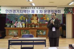 - [인천경기] 제1차 운영위원회 회의 포교사단 인천경기지역단 제1차 운영위원회 회의가 불기2564(2020)년 1월9일 (목) 오후7시 지역단사무실에서 위원39명이 참석하여 실시 되었다. 원경 권태근 수석부단장의 사회와 일심화 곽순선 부단장의 집전으로 삼귀의 ,우리말반야심경봉독, 단장인사말, 경과보고, 안건심의, 임명장수여등으로 진행 되었다. 등혜 배동학 단장은 '최선으로 함께 열심히 가자,감사합니다'라는 짧은 인사말을 하였고 34명의 위원에게 임명장과 위촉장을 수여 했다. 새로 임명 받은 11대 위원들의 환희심과 열정이 가득한 모습에 인천경기지역단은 무한한 발전이 있으리라 기대해 본다. 인천경기지역단 아자아자 화이팅 !!!