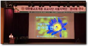 - [서울] 불기2568(2024)년 6월 29일 오후 1시, 서울지역단 분야별 연수가 불교문화역사기념관 지하공연장에서 실시됐다. 이날 연수는 종단개혁 30주년을 맞아 현시대에 맞는 중앙 종무기관 조직개편을 통한 3원체재의 통합에 관한 불가피성과 진정한 포교사로서 자세확립과 역할, 도량 도사 도반의 삼도 중요성, 성지순례의 참된 의미 등 울림을 주는 포교부장 남전스님의 법문이 있었다. 강민구 단장은 "변화와 개혁없이는 시대 흐름에 부응하지 못하며 자의든 타의든 개혁의 물결에 배를 띄울 수 없다. 계층별 직능별로 팀장들과 함께 팀의 화합과 활성화를 위해 논의하고 애로사항을 경청해서 포교사로서 자긍심을 높이고 팀 화합과 활성화가 될 수 있도록 최선을 다하겠다"고 밝혔다. 또한 포교사단 강의수 수석부단장의 포교사 리플레이 교육 안내와 임희웅 전 포교사단장의 포교사의 화합을 주제로 특강이 있었다.