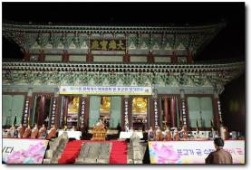 - [서울] 불기2568(2024)년 9월 28일 오후 2시, 대한불교조계종은 서울 광화문광장 특설무대에서 마음의 평화, 세계의 평화를 염원하는 "2024 국제선명상대회(불교도 대법회)를 봉행했다. 이날 실시된 국제선명상대회는 총무원장 진우스님을 비롯해서 불산스님, 일수스님, 참선재단 선원장 금강스님, 로시조안 할리팩스, 툽텐 진파, 차드 멩 탄, 직메 린포체 등 국내외 명상전문가들과 사부대중, 일반시민 등 3만여명이 참석한 가운데 거행됐다. 포교사단은 김영석 단장과 각 지역단장, 지역단 포교사 등 3,000여명의 포교사가 행사가 시작되기 전 도착해서 장궤합장, 국민 오계 수계법회 참여, 행사장 안내 및 거리질서, 안전유지, 외호업무를 담당했다. 특히 성루지역단은 350여명의 포교사가 참석해서 각 총괄팀별 담당 구역에서 행사가 마무리 되는 시간까지 안전한 행사 진행을 위해 봉사했다. 국제선명상대회는 국민 오계수계법회, 승보공양법회, 국제선명상대회 개막식, 음악회 순서로 진행됐다. 생명존중과 상생의 가치를 믿고, 우리의 마음가짐과 행동에 좋은 습관을 들여 나와 우리 사회의 행복을 위한 국민 오계수계법회는 불살생계, 투도계 등 불교 전통 오계를 현대 사회에 맞춰 '모든 생명을 아끼고 존중하자. 남의 것을 탐하지 말고 나눔을 생활화하자. 신의를 지키며 심신을 맑게하자. 나와 남을 속이지 말자. 내 정신과 몸에 해로운 것을 멀리하자.'로 재해석하고 도량결계를 시작으로 참회, 연비, 귀의, 발원, 계첩수여 등 수계제자를 위한 국민 오계 수계법회가 진행됐다. 연비를 받고 삼보에 귀의한 수계제자들은 내 안의 평화와 국민 행복을 위해 "늘 깨어있는 마음으로 모든 만물의 실상을 바로보고 약자의 고통을 보듬으며, 헌신과 봉사의 삶을 살아가겠습니다. 신뢰와 존중, 존경과 공경의 사회를 이루어 공동체의 평화를 이끌고 세계 평화를 염원하는 우리들의 서원을 모든 국민들과 함께 하겠습니다."고 발원했다. 국민 오계수계법회에 이어 승보공양 법회가 이어졌다. 숭보공양은 불법승 삼보께 올리는 불자들의 정성이 가득 담겨있어서 서로 종중하고 공경하는 인간관계를 회복하고 우리 사회를 더불어 상생하는 공동체로 만들어 가자는 의미를 담고 있다. 주석 스님과 배우 박정자씨의 사회로 진행된 승보공양법회는 대한불교조계종 제28대 중앙신도회장 인사말, 공양게, 운심게, 보공양진언, 보회향진언, 축원, 치사, 사홍서원 순서로 진행됐다.