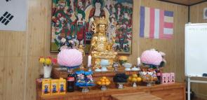 - [울산] 산야와 가로수는 가을 끝을 알리듯 미련두지 않고 갈길을 향해 떠남이 아름답게 보입니다. 문수팀은 11월 둘째주 1대대 법회 다녀왔습니다. 새로 군종 임무를 맡은 상병이 6명을 법회에 참석 하도록 권유해서 참으로 감사했습니다. 전역 까지 5개월이 남았지만 군종일을 맡아 보겠다며 자청해 주어서 더욱 감사했습니다. 모태 신앙으로 교회에 다녔지만 불교을 알아 보고 싶어서 법회에 참석한다며 봄 첫 만남때부터 이야기를 했습니다. 그래서 기독교와 불교의 차이점을 설명해 주었습니다. 모든 종교는 다 참된진리를 말하고 있다. 하지만 단 한가지 차이점은 우리는 부처님 되기 위한 종교라는 점을 설명해 주었더니, 뭔가 알았다듯 그때부터 법회도 참석했고, 법회때 마다 경전을 또박또박 잘 따라 읽는 군종 이정우 상병 입니다. 전역때까지 최선을 다해 보겠다며 웃음짓는 얼굴이 믿음직스럽습니다. 도서관 확장 공사로 인해 식당에서 예불을 올렸습니다. 다음 달엔 더 멋진공간을 만나 볼수 있기를 ᆢ() 후기~ 가연심/배정숙()()()