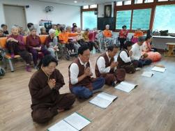 - [울산] 11월 17일 일요일, 연화팀 염불봉사 염불은 황망하고 쓸쓸한 영가의 마음을 어루만져 주는 가장 큰 공덕입니다. 부처님의 말씀을 전해 듣는 영가님의 복도 수승합니다. 휴일인데도 불구하고 참여해주신 포교사님들께 감사드립니다. 항상 뒷모습만 보여 드리지만 열심히 하시는 모습이 정말 아름답습니다. 수고들 하셨습니다. 팀장 각성 류동기 천안 김영길 수진향 정문엽 수월심 정동례 동참했습니다.