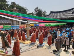 - [경북] 대한불교조계종 제11교구 본사 불국사(주지 종우 스님)가 부처님 진신사리 친견 천일기도를 봉행되었다. 진신사리는 황룡사지와 감은사지에서 출토돼 국립중앙박물관에 보관되었다가 지난해 6월 경주 불국사에 봉안됐다. 진신사리는 황룡사지 출토 5과와 감은사지 출토 서삼층석탑사리 1과,언양 내원암 출토사리 1과다. 황룡사지 출토 진신사리는 643년 자장율사가 당나라에서 모셔와 황룡사 9층 목탑에 봉안 했다고 삼국유사에 기록돼 있고 감은사지 출토 진신사리는 문무왕의 설화가 깃들었다. 이희철 단장을 비롯한 경북단의 많은 포교사들이 동참한 가운데 부처님 진신사리 친견 천일기도는 5일 입재해 2021년 12월29일 회향한다 기도는 매번 100일이 되는 날 회향하고 다시 입재해 10번의 백일기도를 이어 천일기도 대법회를 회향한다.