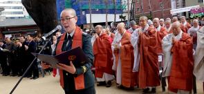 - [포교사단] 군승 파송 50년, 빛나는 성과로 새로운 100년을! 군승軍僧파송 50주년 군승의 날 기념 특별법회가 11월 30일(금) 오후 2시부터 서울 조계사 대웅전 앞 마당, 특설 야단법석에서 성대하게 열렸다. . 명고·명종-삼귀의-반야심경-순국선열 및 순직 군승에 대한 묵념-고불헌화-군승 50년사·전시가사 봉정-봉행사-감사패전달-총무원장 법어-유공 군승 포상-축사-발원문-사홍선원-기념촬영 순으로 여법하게 진행되었다. 대한불교조계종 총무원장 원행스님-교육원장 현응스님-군종교구장 혜자스님과 역대 군종교구장,제1기 군승출신 5명중(작고 1명)김봉식-권오현-장만수·권기중 예비역 법사와 사부대중 1천여 불자들이 참석 어려운 환경속에서도 굴하지 않고 부처님의 가르침을 널리 펴온 군승포교를 축하하고 응원을 보냈다. 지난 1968년 11월 30일 파월부대에 5명의 군승을 파견한 날을 기념하는 군승의 날 50주년을 맞는 현재는 육·해·공군의 군승법사는 140여명, 군부대 사찰 400여곳에 이를 만큼 괄목할 성장을 이루어 낸 것으로 종단 안팎에서 인정받고 있다. 조계종 총무원장 원행스님은 군승의 날 법어를 통해 “전래 초기부터 나라와 민족을 위하는 일에 앞장서온 불교의 가르침은 신라 원광법사의 세속5계중 ‘임전무퇴臨戰無退’ 정신에서 보듯 화랑도의 근본정신이 되었고, 3국통일의 기초를 세웠다” 고 호국불교 군승의 역사성을 강조한후 “심지어 불교를 억압하던 조선조에서도 불교의 호국정신은 더욱 왕성하게 타올랐으니 임진·정유란에서 보듯 휴정(서산), 사명, 처영스님은 의승군義僧軍을 조직-지휘하여 누란의 위기에 처한 나라를 구한바 있다”고 강조했다. 군종특별교구장 선묵 혜자스님은 군승의날 50주년 기념 봉행사에서 “1968년 월남전 파병 때 5명으로 시작된 군승파송의 역사는 50년이 지난 현재는 육·해·공군의 전-후방 각급부대에 세워진 400여 군법당에서 활동하는 군승법사는 140여명에 이를만큼 괄목할 만한 성장을 이루어냈다”고 현황을 소개하고, “군승교구는 지난 50주년의 자랑스러운 역사를 딛고 새롭게 시작되는 군불교 100년을 준비 하고져한다. 불법을 바탕으로 장병들과 함께하는 신바람나는 군불교,신뢰와 종경을 받는 군포교를 이루어 낼 것을 약속드린다”고 말했다. 1기 군승법사를 대표한 권기종(동국대) 명예 교수는 “찬란한 융성의 시대와 참혹했던 억압과 수난의 시대를 두루두루 이겨낸 한국불교 1700년의 장구한 역사속에는 ‘스님을 중’이라 부르던 무명의 시대, 1980년대까지만 해도 국정교과서는 물론 사전류나 개인 저술에도 서슴없이 ‘중’으로 폄훼하여 적었던 차별의 시대를 극복한 호국불교의 빛나는 전통이 찬연하다”고 자랑스러워 했다. 그 밖에도 정경두 국방장관(차관 대독)-조계종 중앙종회 의장 범해스님-국회 정각회장 주호영 의원,군불교신도회장 김병주 대장의 “군승 50년을 축하하고,세로운 100년의 미래를 약속할 수 있는 호국불교의 도량으로 거듭날 것을 기원” 해달라는 축사와 덕담이 이어졌다. 이 자리에 참석한 육·해·공군 군승 일동은 발원문을 통해 “군승 일동은 군승파송 50주년을 맞아 대자대비하신 부처님의 慧明을 밝히고 불국정토 구현과 국태민안을 지키는데 앞장 설 것을 굳게 다짐하나이다“는 서원을 저마다의 마음속에 깊게 새겼다.