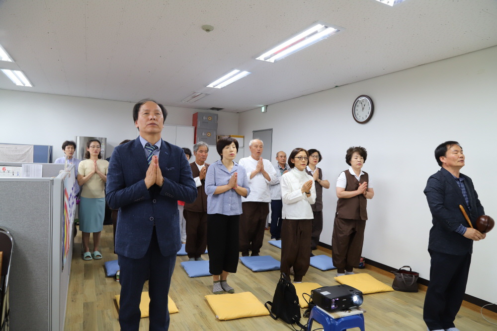 - [인천경기] 불기 2562(2018)년 제23회 포교사고시 1차합격자 집체교육 일시 : 2018년 6월3일(일) 09:30~ 17:00 장소 : 지역단 사무실 진행 : 안금녀 교육위원 집전 : 어윤식 동부총괄팀장 이른 더위가 시작된 초여름날!!더위에 아랑곳하지 않는 열정의 23기 포교사 1차 합격자님들의 집체교육이 인천경기지역단 사무실에서 실시되었습니다.휴일 이른 시간부터 오후시간까지 교육에 임하는 분들의 모습에서 밝은 희망의 미래 포교사를 만날 수 있었습니다.시작부터 마무리 회향까지 그 어느 기수의 1차 합격자보다 열심히 준비하고 함께하는열정의 23기님들! 함께하는 순간 순간이 감동이었습니다~*열정의 23기를 이끌어 오신 총괄팀장외 임원님들의 노력도 많이 많이 감사드립니다. 글 : 문미숙사진 : 문미숙, 이용경