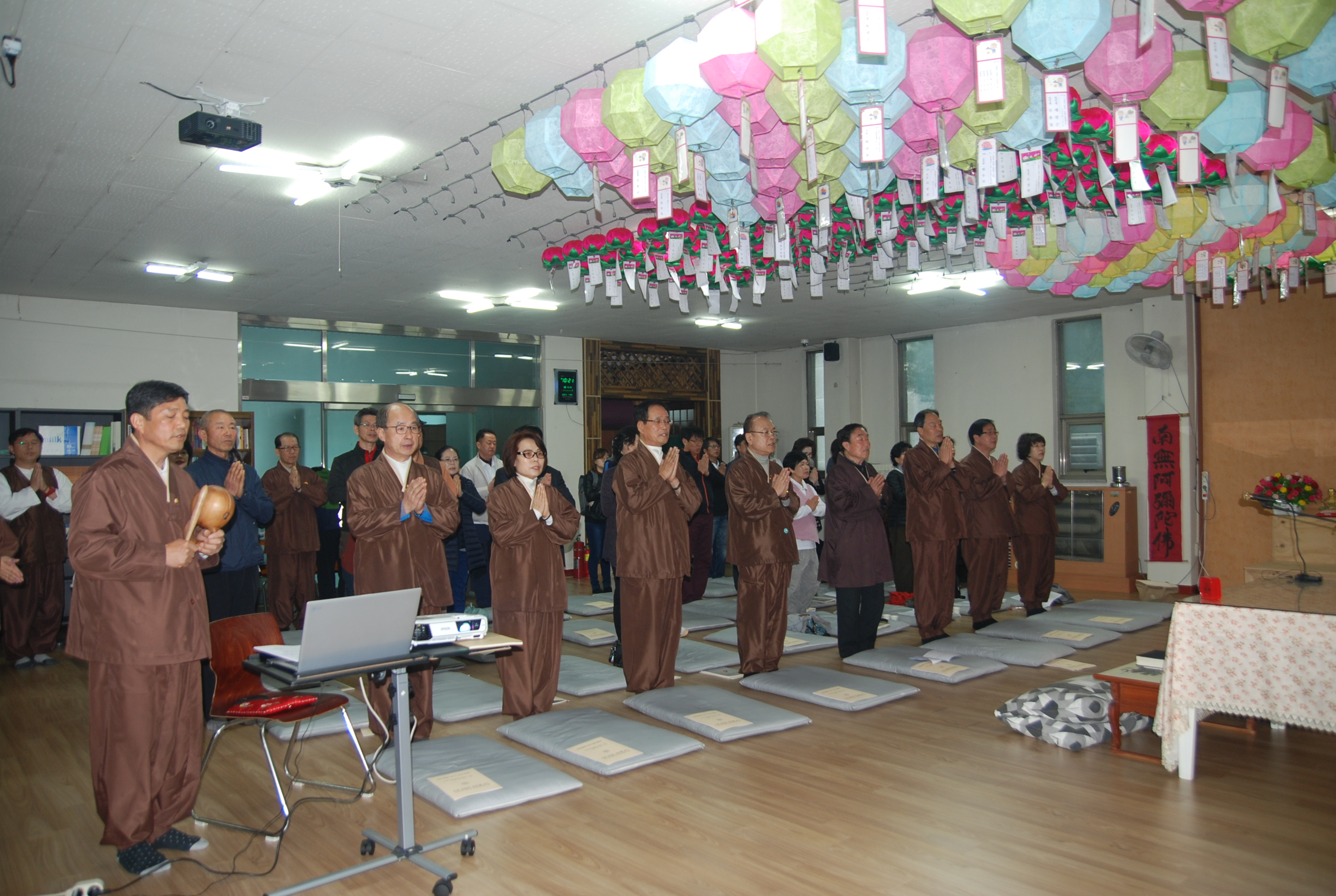 - [울산] 제 23기 포교사 1차 합격자 2차 지역단 연수가 시작되었습니다.2차 연수는 지역단이 주관해서 1차 합격자들을 대상으로 이론 및 실기교육과 팀활동, 봉사활동, 행복바라미 활동 등에 참여시켜 포교사로서의 역량을 갖추게 하고 또한 포교사로서의 자질을 갖추고 있는지에 대한 평가도 하는 중요한 일입니다.2차 연수는 이론교육 6회와 목탁습의 6회 팀활동 11회, 행복바라미 동참, 연등축제 동참 등의 내용으로 구성했습니다.교육은 주중에 하고 팀활동은 주말에 해서 매주 두차례로 교육을 받아야 하는 빠듯한 일정입니다. 이는 선배 포교사가 모두 겪은 교육과정이라 1차 합격자들도 이해 하리라 믿습니다. 어제 저녁에 이론 교육 첫 시간을 본 지역단 수석부단장이신 평담 배해익님께서 해 주셨습니다. 대상자 8명 중 1명이 결석하고 7명이 교육을 받았고 진행 준비 등 실무는 단장이 했습니다.평담수석부단장님은 '사찰문화 해설'에 대해 깊은 지식과 정확한 교수법을 지닌 분으로 2시간 강의 내내 온화하면서도 쉽게 설명을 해 주셨고, 해설사의 태도와 방법, 그리고 경전 등 불교 신앙의 강조 등 좋은 내용의 교육을 해 주셨습니다.후기는 ~ 석전단장님^^