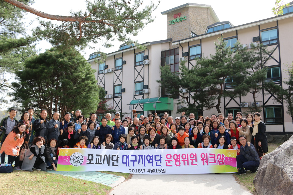 - [대구] 포교사단 대구지역단에서는 『2018년 제4차 운영회의』가『운영위원 워크샵』을 겸하여 2018년 4월 15일에 성대하게 진행되었습니다.전날까지 내리던 봄비가 말끔히 그친 맑은 봄날씨에 팀총무 이상의 소임자79명이 동참하였습니다. 전세버스 2대에 분승하여 대구를 떠난 포교사들은오전에 해인사(원당암, 홍제암) 참배와 자유시간을 마친 후 경남 함양으로 이동하여『용추그린하우스』(방창덕 단장님 운영업체) 에서 운영회의와 워크샵을 가진후화기애애한 단합의 시간을 가졌던 뜻깊고 행복한 하루였습니다.이날 대구지역단 향천 방창덕 단장님과 전임 단장 소임을 맡으셨던 권대자 고문님,김상수 고문님, 이용우 고문님 및 박만일 고문님이 참석하셔서 자리를 더욱 빛내주심과 아울러 많은 찬조금을 보시해 주셨습니다.워크샵에서 단장님과 고문님들께서들려주신 좋은 말씀을 아래에 간략히 메모해서 올립니다.▣ 방창덕 단장님 : 중국 고승의 허운화상(1840~1959)님은 19세때 출가하여법랍101세, 세수 120세로 입적하셨는데 가장 최근의 생불이라 할 수 있는조사님입니다. 이 분의 하신 말씀중 성불의 조건 네 가지는'인과를 굳게 믿어라' ,'계율을 엄히 지켜라 (계에서 정, 정에서 혜로 나아간다)', '신심을 굳게 가져라' ,'수행의 문(門)을 정하라' 등 입니다. 우리는 도를 이루는 생활을 이어가야 합니다.우리 포교사들은 도를 이루는 그날까지 열심히 수행, 정진하도록 합시다.▣ 김상수 고문님 : 어떠한 수행도 마음에 어두운 그늘을 가지면 나아가지 못합니다.그러하니 우리는 누구를 미워하거나 부정적인 마음을 떨쳐 버려야 합니다.▣ 이용우 고문님 : 포교사의 길은 바로 수행의 길입니다. 가장 효율적인 포교의 길은팀활동을 열심히 하는 것입니다.▣ 박만일 고문님 : 작년에 경북지역단이 분단하기 이전에는 대구지역단의 소속포교사가 900명이 넘었고 전국에서 가장 규모가 큰 지역단이었습니다. 여러가지 힘든일들을 슬기롭게 극복해 왔습니다. 더욱 열심히 하여 대구지역단이 발전하도록 최선을 다합시다.※(1) 이날 워크샵에서는 향천 단장님의 주재와 가호 김효순 포교사님의 집전으로 포교원에서 제정한 《포살법회 의식집》을 기준으로 하여 최초로 첫 시험 법회를 시연 봉행하였습니다.※(2) 더 자세한 내용은 대구지역단 카페를 방문해 주시면 대단히 감사하겠습니다.