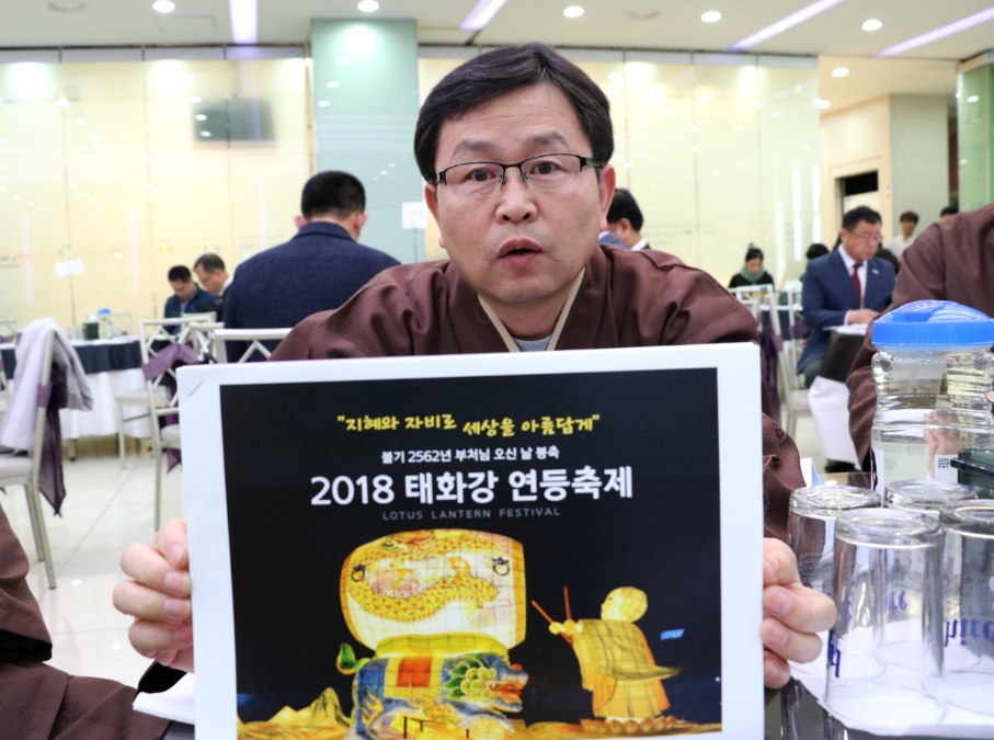 - [울산] 3월30일(금) 오후 6시 30분, 남구 옥동 문화뷔페에서 불기 2562년 부처님 오신날을 맞이하여, 2018년 태화강 연등축제 봉행위원회가 결성되어 출범식이 열렸습니다. 이 행사에 포교사단 울산지역단에서도 석전 단장님과 평담 수석부단장님, 영암 부단장님, 총괄1팀장 도일님, 총괄2팀장 연화행님, 보현팀장 정법설님과 홍보위원 원명지 참석했습니다. 울산시불교종단연합회(회장 남현스님)가 주최하고 태화강연등축제봉행위원회(위원장 원혜스님)와 울산불교신도회(회장 이병호)가 주관하는 올해 태화강 연등축제는 다양한 볼거리, 즐길거리를 통해 부처님의 자비를 세상에 전합니다. 오는 5월 12일부터 13일까지 남구 태화강 둔치(구 태화호텔 앞)에서 개최 될 연등축제는 첫째 날인 5월 12일에는 청소년 문화프로그램, 시민축하공연, 점등식, 태화강 소망등 띄우기 등으로 진행되며, 둘째 날은 울산불교합창단 콘서트, 행복바라미 문화행사, 부처님 이운식, 봉축 법요식, 봉축 제등행렬 등이 열립니다. 이외에도 양일간 발우공양, 만등연등불사 등 불교문화체험과 캘리그라피, 연등만들기 등 시민체험프로그램과 풍경소리전, 장엄등 전시 등이 열리며제등행렬은 13일 오후 7시부터 태화강둔치에서 출발해 신정시장, 울산시청, 달동 롯데마트사거리까지 이며, 시청 앞에는 축하무대가 설치돼 퍼포먼스도 열립니다. 남현스님은 “태화강 연등축제는 우리 민족의 삶과 함께 한 한국불교의 정통성과 진수를 느낄 수 있는 불교문화의 대중화를 위해 울산시민들과 함께하는 문화의 장”이라며 “울산에 부처의 자비를 전파, 지역사회 발전에 이바지하는 알찬행사로 시민들을 만나겠다”고 말했습니다.