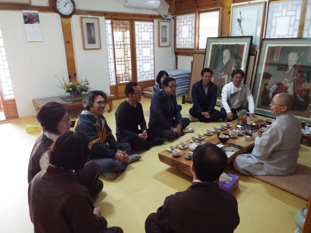 - [울산] 제23회 일반포교사 자격고시 합격자 연수 둘째 날~~안개가 잔뜩 낀 한국문화연수원의 새벽 공기가 코끝을 스친다. 연수생들은 새벽 예불을 보기 위해 피곤한 기색도 보이지 않고 일어나는 대로 부지런히 단장을 한다.지극한 마음으로 예불과 이산혜연선사 발원문과 연수의 성공적인 회향도 발원한다. 예불을 마친 후 포교부장 가섭스님께서 인사말씀에~내 마음속에 부처가 있다. 모든것이 완벽하게 갖추어진 불성이 있는데도, 탐진치 삼독이 가득차 있어 늘 안개속을 헤매는 듯 하다. 참선의 시간을 가지며 불성을 찾을 수 있는 기회가 되길 바란다고 하신다.다시 아침 공양을 위해 공양간으로 가는 연수생들의 행렬은 깊은 산중의 수행자들 같다.이 음식이 어디서 왔는가덕행이 부족한 나는 받기가 부끄럽네마음의 온갖 욕심 다 버리고 육신을 지탱하는 양약으로 알아 도업을 이루고자 이 공양을 받습니다.드디어 참선 시간이다.소나무로 둘러싸인 잔디 마당을 돌며 마음을 가다듬는다. 묵언을 하며 돌다가 원을 만들며 자리에 앉는다.스님의 죽비 소리에 일제히 참선에 든다.30분간의 참선 시간~ 탐진치에 물든 자신을 돌아보는 성찰의 시간~신선한 공기를 마시며 진정한 나를 찾는 명상의 시간~연수생들의 가슴 속에 많은 의미를 주는 시간이 되었으리라.연수생들이 각자의 목탁으로 참여하는 목탁교육 시간~수행자는 늘 깨어 있어야 한다는 의미의 목탁~포교국장 보연스님이 직접 가르치는 목탁 수업~지루하지 않은 최고의 흥미유발의 시간이었다.이제 천천히 걸으면서 심신의 긴장을 풀고 명상을 하는 포행 시간10분 정도를 걸어서 제6교구본사 공주 마곡사에 도착해서 기념촬영을 했다.고려중기의 대표적인 오층석탑을 보고 고찰의 아름다운 풍광을 뒤로 하고 연수원으로 되돌아 오는 길~새벽의 차가운 공기와는 달리 따뜻한 봄볕이 포근하다. 자연앞에서 겸손해야 하고 순리대로 살아야 하며 그속에서간사함과 비열함의 싹들을 버리고자 노력을 해 본다. 다목적 홀에 다시 돌아와 어린이 포교와 청소년 포교에 관한 강의와 불교상담사에 관한 강의를 끝으로 교육을 마친다.제23회 포교사고시 1차 합격자들과 함께 한 1박2일의 연수~긴 시간의 힘든 교육이었지만 서로의 배려로 무사히 마쳤다. 석전 단장님과 연화행 총괄팀장님~함께여서 행복한 시간이었고 감사합니다.이번 연수 인솔은 세명이었으며, 단장님은 전체적인 일을 살폈고, 연화행 총괄팀장님은 연수생들의 세세한 부분까지 챙겼고, 저는(정법설 군포교 보현팀장) 교육일정 사진을 담당했습니다.^^후기~ 군포교 보현팀장 정법설/최문낭^^