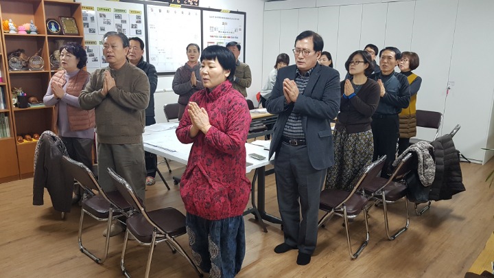 - [대구] 정월대보름이었던 3월2일(금)저녁7시 지역단 사무실에서 향천(방창덕)단장님을 모시고제2차 임원회의가 있었습니다.향천(방창덕)단장님께서는 인사 말씀에서 각자 수행은 잘하고 계십니까? 요즘 성철스님 법문집을 즐겨보고 있는데 와닿는 글귀가 있다며 말씀하셨습니다.불교의 목적이 무엇인가 한번 더 생각해보자. 불교의 목적은 성불이고 중생을 제도해야 한다.내가 수행하고 공부하지 않으면 눈먼 사람과 같고 눈 먼 사람이 다른 사람을 인도 할수 있겠는가?자신이 먼저 눈을 떠야 다른 사람을 인도할수 있다. 수행해서 자신부터 눈을 떠야 한다.임원은 단원들 앞에서 안내자 역활을 해야한다고 하시며 수행 덕목의 첫째는 계획된 화합에 동참하는것이며 임원이라면 매달 첫째주 금요일 임원회의, 둘째주 금요일 운영회의는 꼭 참석해달라고 당부하셨습니다.