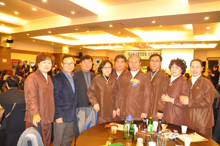 - [대구] 3월5일(월) 오후5시 MH컨벤션웨딩 리젠시홀에서 대구지역 사부대중이 모인 자리에서대구불교 총연합회 회장 이,취임법회가 있었습니다.각 종단 대표와 지역단 포교사단 단장님을 비롯한 임원진, 연합합창단 임원진과신행단체 임원진등 400여명이 그 동안 수고해주신 류병선 전회장님께 고마움을 전하는감사패를 전달하고 신임 서중호회장님을 큰 박수로 모셨습니다.대구 불교 총연합회 서중호 신임회장님은 현재 아진산업 대표를 맡고 있으며 그 동안 어려운 이웃을 위해 많은 일들을 하고 있음을 약력으로 말해주었습니다.앞으로 대구 불교 발전을 위해서도 열심히 해보겠다는 포부를 밝혔습니다.각종단 대표들이 다 참석해 축하해주는 자리에 지역단에선 향천단장님, 혜림부단장님, 진아성, 수련화부단장님, 전문위원 (지원님, 임명심님), 총괄팀장, 진공님,진공심,심인님,그리고 청백사무국장님께서 참석해주셨습니다.