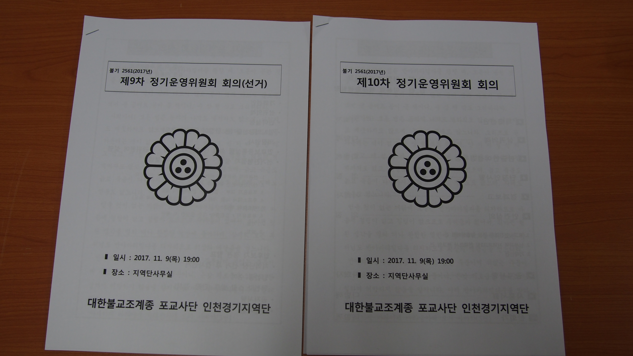 - [인천경기] 불기2561(2017년) 제10차 정기운영위원회 회의일시: 2017. 11. 9(목) 19:00장소 : 지역단사무실사회 : 이형 수석부단장집전 : 이용경 북부총괄팀장제10차 운영위원회 회의를 개최하였습니다.제 10차 운영위원회 회의 내용은 사진으로 대신합니다.오랜시간까지 회의 진행에 함께하신 운영위원님들 감사합니다~~다음 행사에서 뵙겠습니다.