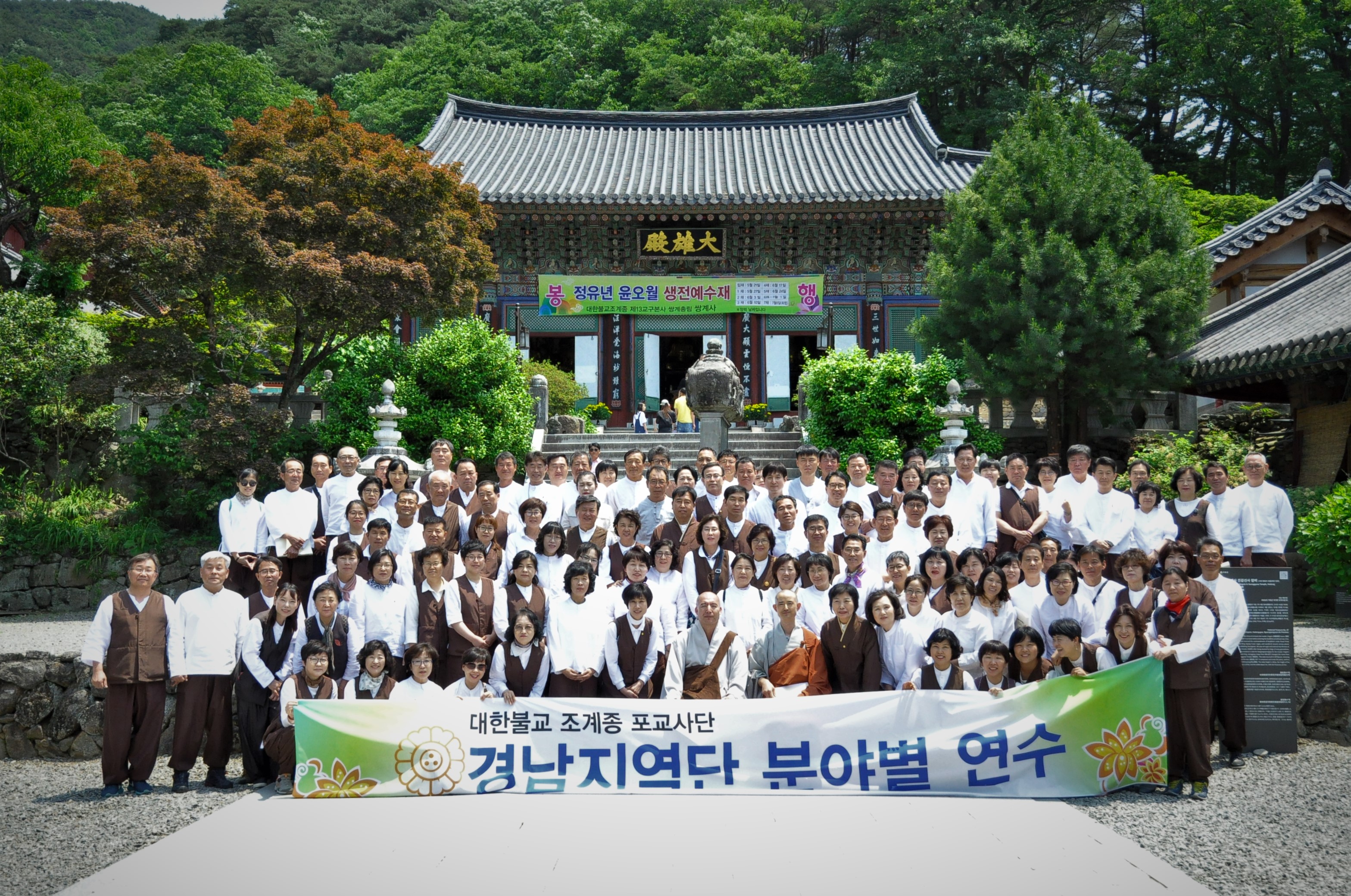 - [경남] 경남지역단(단장 김위영)은 불기 2561(2017)년 5원 28일 대한불교조계종 제13교구본사 쌍계사 팔영루에서 주지 원정스님 과 포교국장스님을 모시고 지역단연수, 갱신자보충교육,1차합격자 연수 교육을 동시에 실시하였다,주지스님께서는 금당(육조스님 정상을 모신곳)내력에 대해 설법 하셨고, 이어 포교 국장스님 감로법과 본단 부단장님 께서 단장님 인사말 대독 후 포교사의 역활, 포교사단및 지역단의 이해,지정강사 분야별 강의가 이어 졌고,분야별 활동사례는 사찰 문화 해설 1,2팀(풍경팀,직지팀)에서 발표 하였다분야별 활동은 년초 실시한 소그룹 분야별 연수에서 우수한 팀을 뽑아 사례 발표를 하였고 팀활동의 이정표가 되기에 충분 하였다