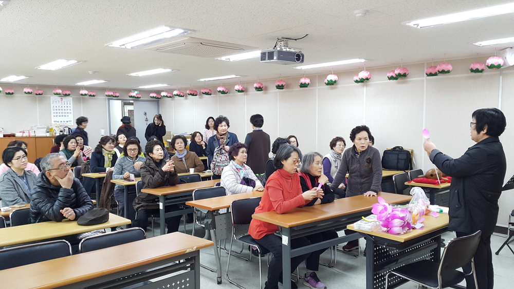 - [서울] 서울지역단 연등회 연꽃 만들기 사전 작업3.29(수) 오후 1시~오후 5시까지 서울지역단 교육관에서 40여명의 포교사들이 모여 4.29(토) 연등회 당일 종로거리를 지나는 시민들이 체험할 수 있는 연꽃 만들기를 위해 연꽃잎 말기를 실시했다. 박상희 연등보존위원회 전문위원이 먼저 연꽃 만드는 법을 시연하였으며, 이후 서울지역단 이주영 단장을 비롯한 임원진들, 각 총괄 어린이청소년팀, 각 총괄 지역봉사팀, 삼성암 신도들, 음성포교팀, 운영위원들이 연등회 사전 연꽃 만들기를 시행하여 300여개 분을 사전 작업을 했으며 추후 날짜를 정해 200여개 이상을 다시 작업할 계획이다.
