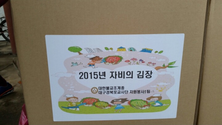- [좋은인연] 함께 나누어 행복합니다 바람에 떨어지며 흩날리는 낙엽을 바라보고, 낙엽도 밟아도 보면서, 한해를 보내는 겨울 초입에서 종일 눈발이 흩날리는 가운데, 좋은인연(이사장 곽명희)은 2015년 11월 26일 10시 성북구 안암동 주민센타에서 ‘사랑의 김장나누기’ 행사를 가졌다. 소외계층의 건강한 겨울나기를 위해 마련한 이번 행사에는 ‘좋은인연’회원, 포교사단 전임단장단 모임 ‘수메다’회원, 포교사단 임원진, 성북구 서강덕 안암동장과 윤만환 구의원 등, 50여 명이 동참했다. 이번에 만들어진 김장은 성북구 관내에 거주하는 독거노인, 소년소녀가장, 청소년가장 등 형편이 어려운 150여 가정에 전달한다. 좋은인연은 2006년 창립 첫해부터 매년 성북구 관내에 거주하는 형편이 어려운 소외계층 가정을 대상으로 ‘사랑의 김장나누기’ 행사를 시행해 왔다.