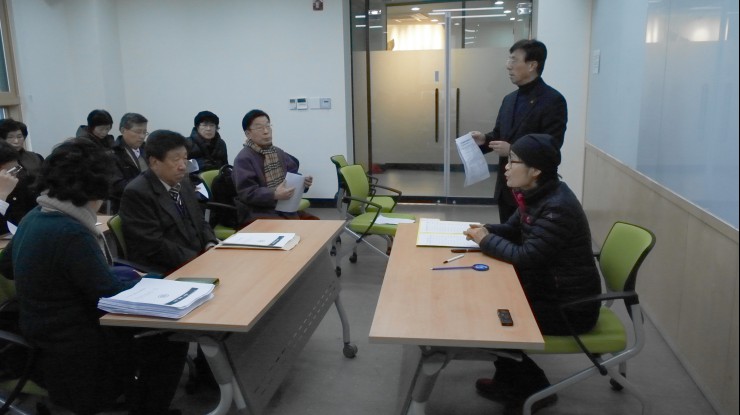 - [포교사단] 2015년도 제5차 임원회의 포교사단(단장 문수행 곽명희)은 2016년 11월 26일 11시 제5차 임원회를 열었다. 회의에 앞서 임원들은 안암동 주민센터 7층에서 열린 좋은인연 주관 독거노인 ‘사랑의 김장나누기’ 행사에 함께한 다음, 장소를 4층 회의실로 옮겨 임원회의를 시작했다. 회의는 성원보고와 지난 회의결과 및 활동보고를 한 다음 제1안 2016년도 포교사단 교육계획안, 제2안 조계종 성역화불사기금 모금 참여의 2개 안건을 의안으로 상정하고 심의를 거처 원안을 모두 승인하였다. 다만 불사기금 모금액과 방법은 제9대 포교사단 출범 후 세부사항을 정해서 추진하도록 의결했다.
